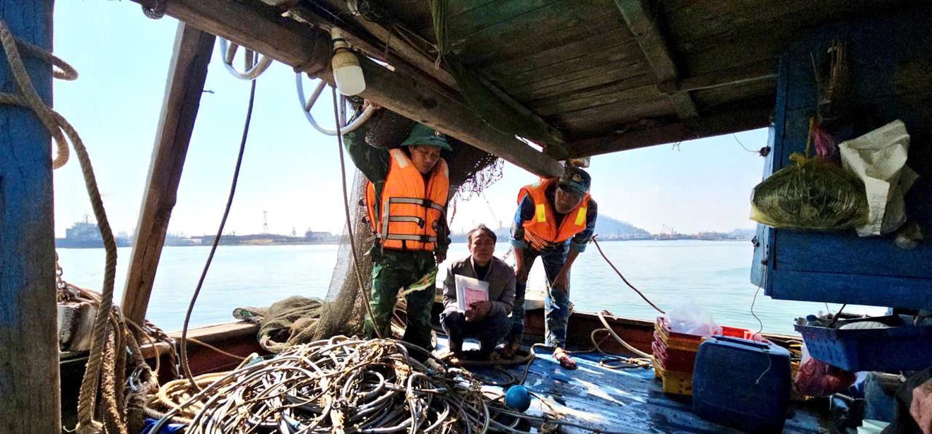 Trong quá trình phối hợp tuần tra, kiểm soát trên vùng biển ven bờ Cửa Lò, sáng 13/1, Chi cục Thủy sản – Kiểm ngư tỉnh Nghệ An cùng Trạm Kiểm soát Cửa Lò (Đồn Biên phòng Cửa khẩu Cảng Cửa Lò – Bến Thủy) đã tiến hành kiểm tra một tàu cá đang hoạt động gần bờ.