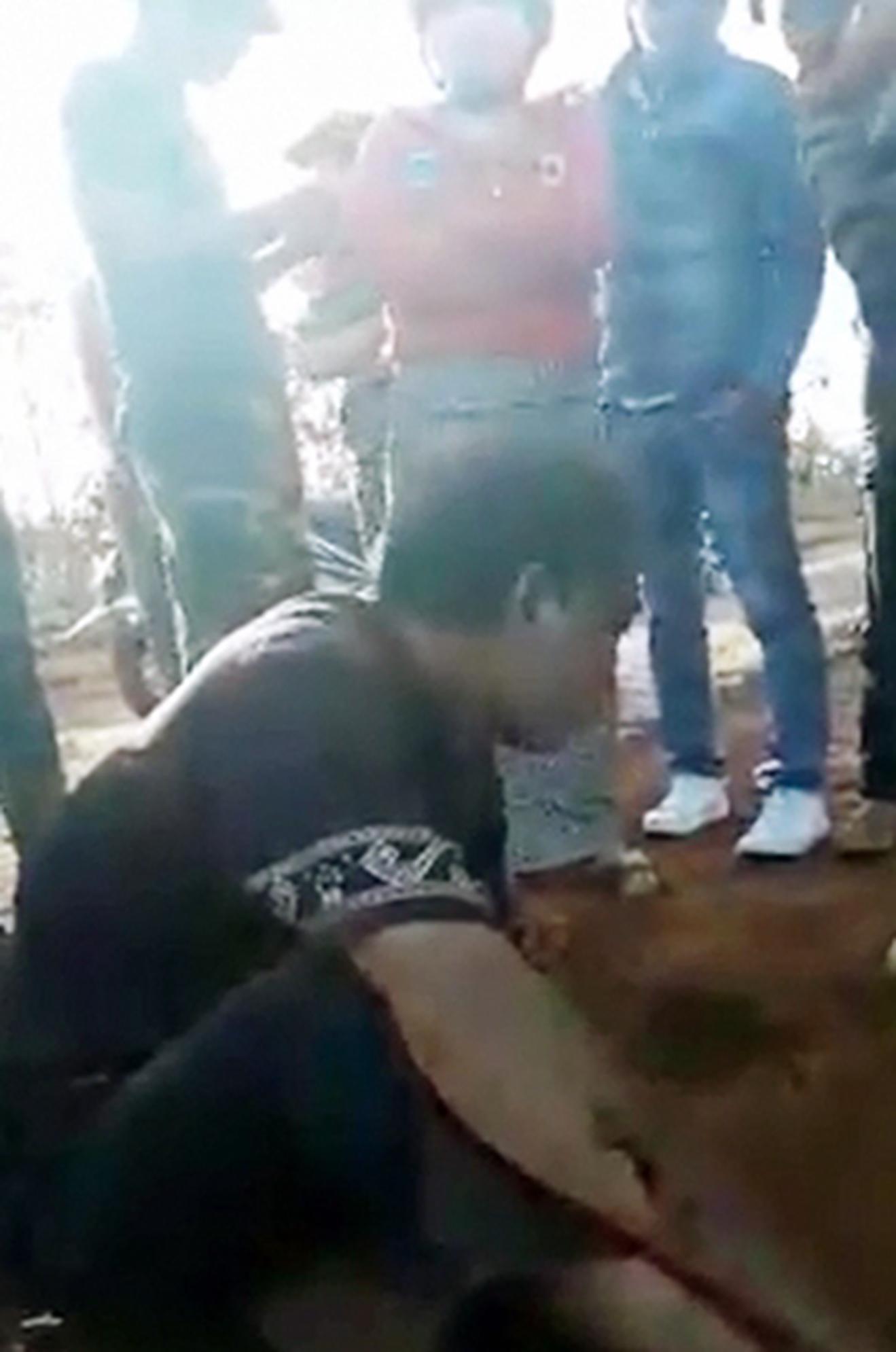 Ảnh người đàn ông bị dân vây đánh vì nghi bắt cóc trẻ em. Ảnh: Cắt từ clip
