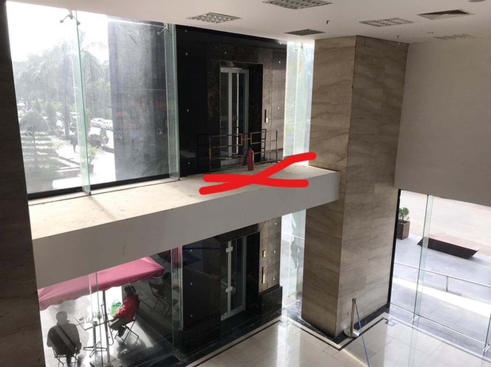 Ghi nhận tại hiện trường cho thấy, thang máy được làm từ tầng 1 lên tầng 4 thuộc khu sàn văn phòng thương mại của tòa nhà. Tại cửa ra thang máy ra tầng 2, là một sảnh hành lang có chiều ngang khoảng 80cm nhưng không hề có lan can hay vật cảnh báo, che chắn.