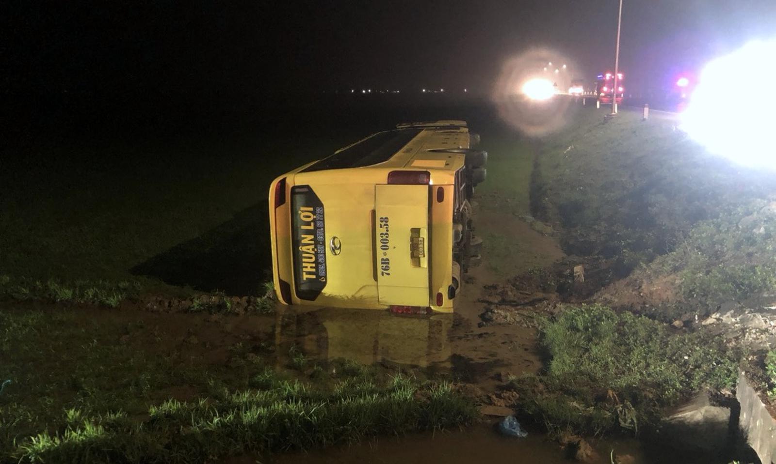 Hậu quả, xe con bị tông mạnh rơi cánh cửa bên ghế lái, chiếc xe khách lật xuống ruộng lúa bên vệ đường. Thời điểm này, trên xe khách đang có 36 người, trong đó có khoảng 10 trẻ em. Ban đầu xác định, vụ TNGT đã khiến 4 người (chưa rõ danh tính) trên 2 xe ô tô bị thương.