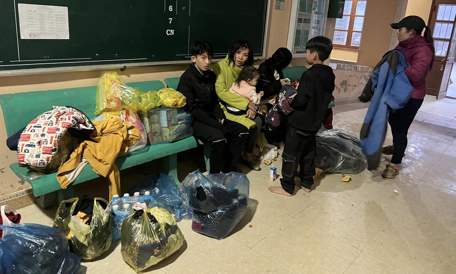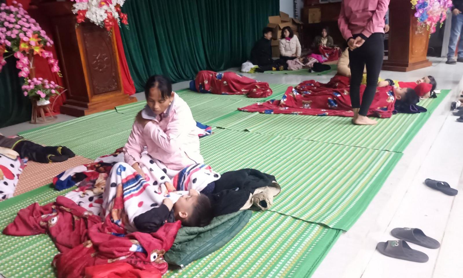 Nhiều người dân xã Vĩnh Sơn đã mang chăn, mền để bà con gặp nạn tá túc qua đêm tại hội trường UBND xã. Ảnh: Minh Tân
