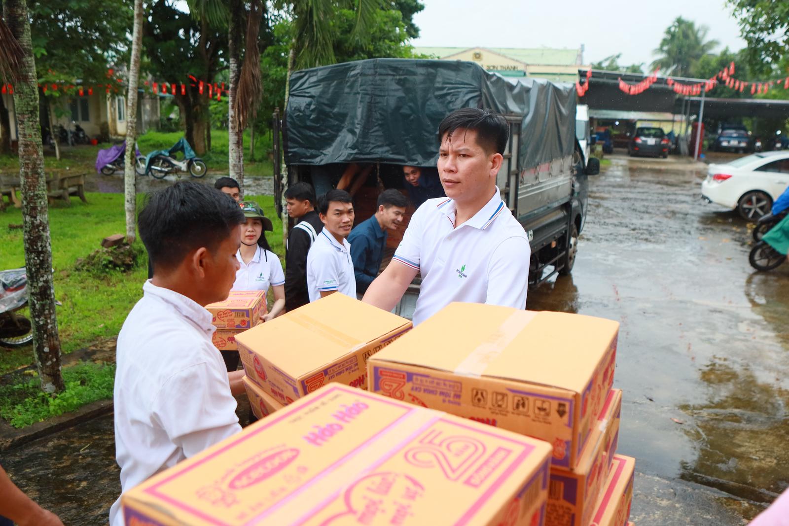Đại diện Đoàn Thanh niên BSR trao quà hỗ trợ cho người dân tại xã Sơn Hạ bị ảnh hưởng do mưa lũ