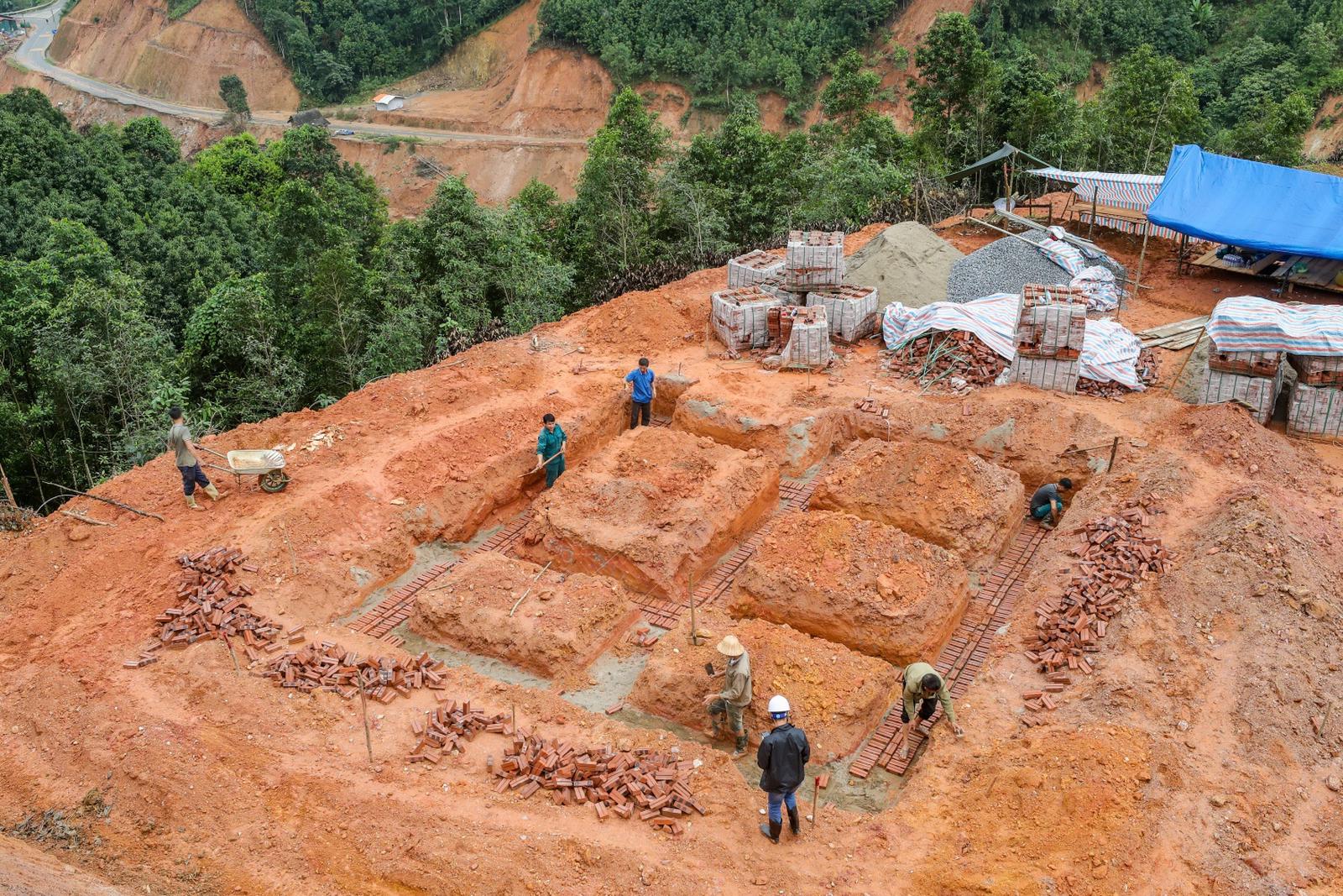 Các kỹ sư, công nhân xây những căn nhà đầu tiên tại khu tái định cư.