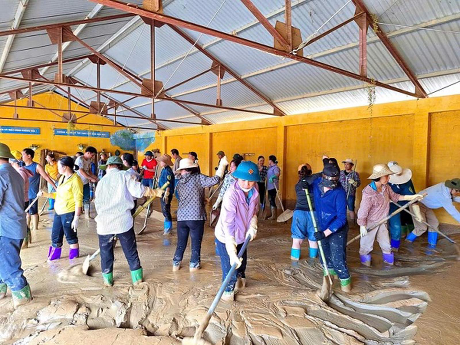 Các đơn vị quân đội, công an đã phối hợp với cấp ủy, chính quyền địa phương và các lực lượng khác giúp Nhân dân dọn dẹp sau lũ. Ảnh: Bùi Bình