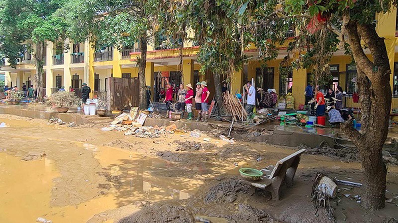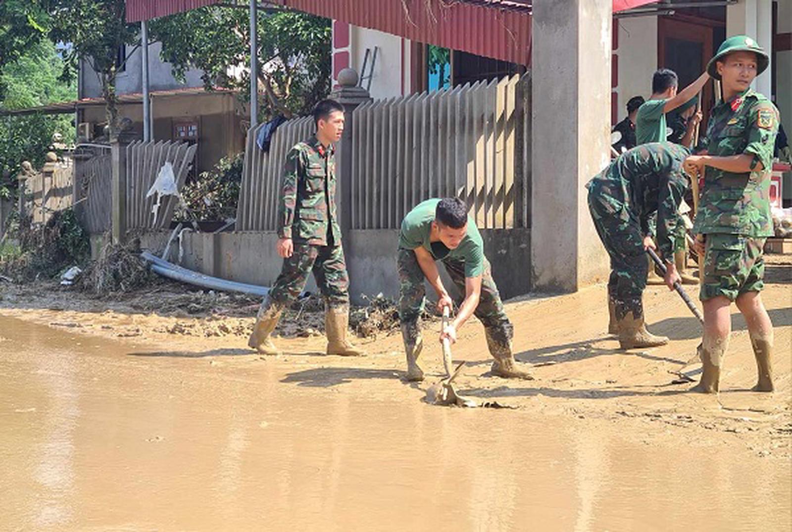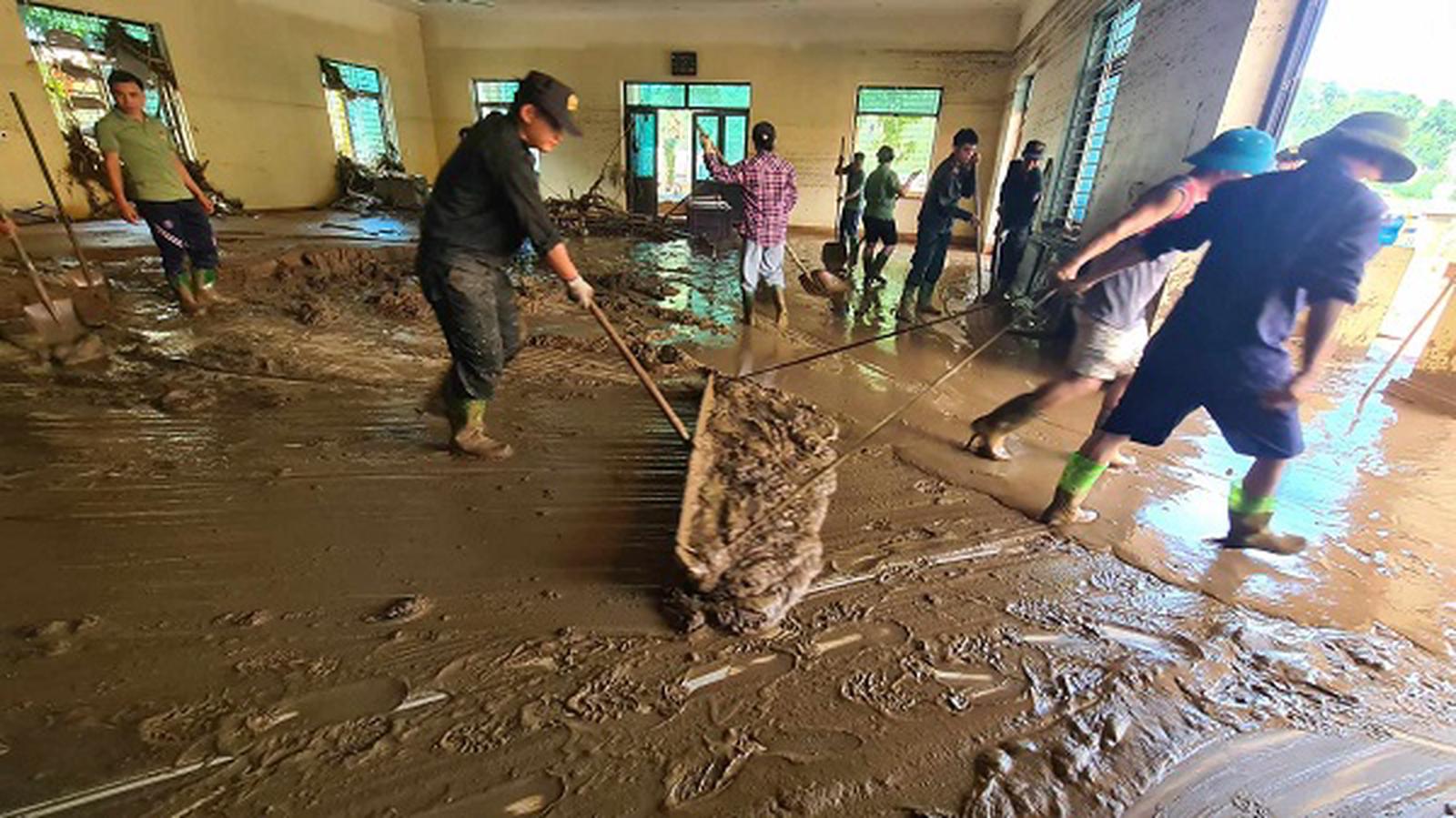 Ông Đinh Khắc Yên, Chủ tịch UBND huyện Lục Yên cho biết, để giúp đỡ bà con sớm ổn định cuộc sống, huyện đã huy động hàng nghìn cán bộ huyện, xã phối hợp với lực lượng công an, quân đội tới các địa điểm dọn dẹp bùn đất, thu dọn đồ đạc, khắc phục hậu quả. Ảnh: Bùi Bình