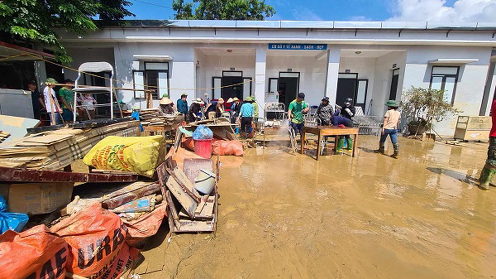 Ông Trần Trung Thành, Giám đốc Trung tâm Y tế huyện Lục Yên cho biết: “Nước ngập gần nóc Trạm Y tế xã Minh Chuẩn khiến toàn bộ máy móc, trang thiết bị, đồ dùng y tế bị hỏng, sau khi nước rút, chúng tôi đã huy động 40 người dọn dẹp đồ đạc, bùn đất sớm đưa vào hoạt động để kịp thời phục vụ công tác khám, chữa bệnh cho người dân". Ảnh: Bùi Bình