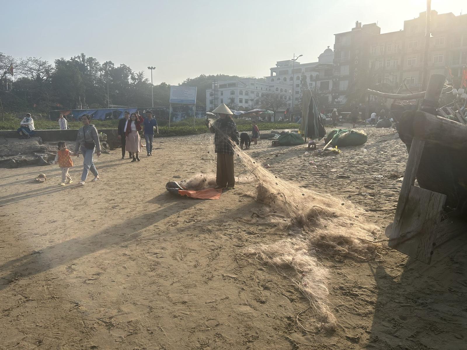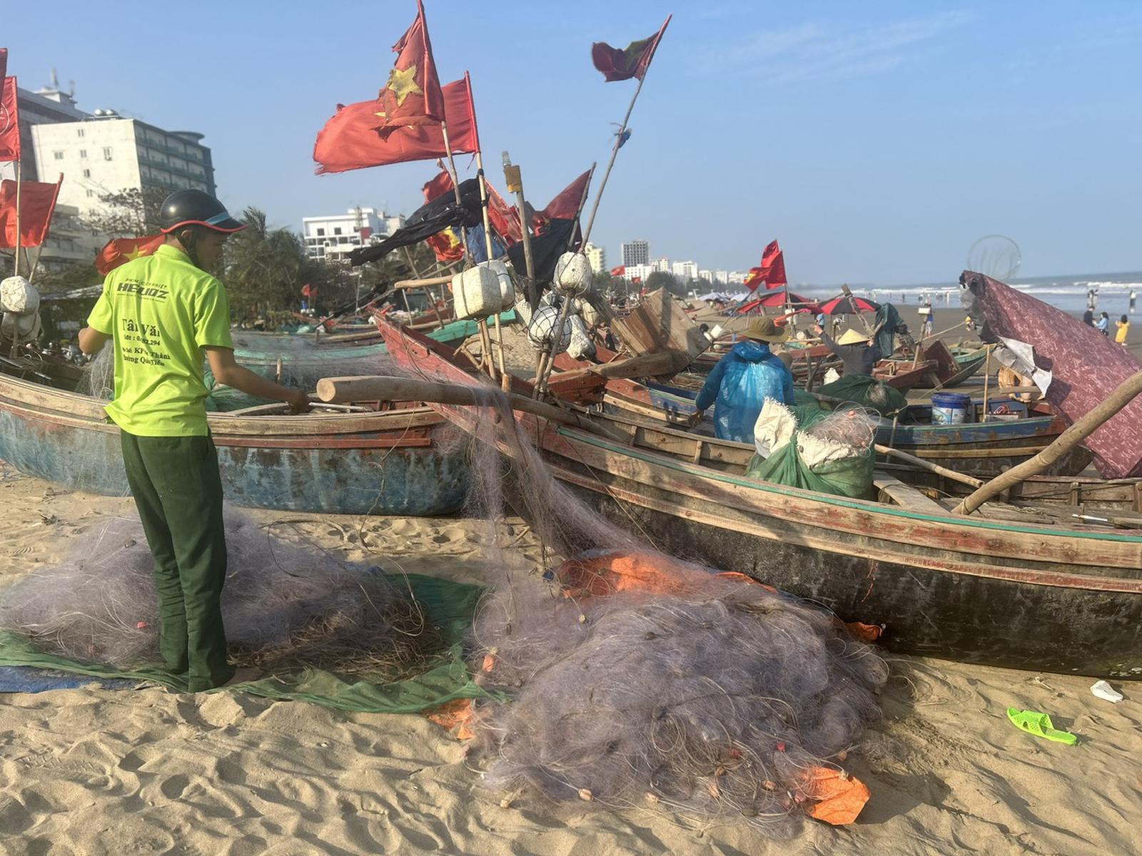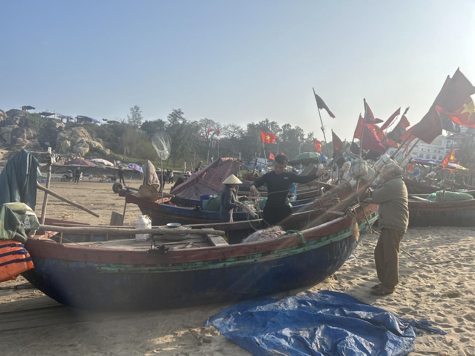 Sau khi ngư dân ra khơi đánh bắt gần bờ về thì lại đang chuẩn bị cho sáng sớm ngày Mùng 4 Tết tiếp tục ra khơi. Ảnh: Hương Trà