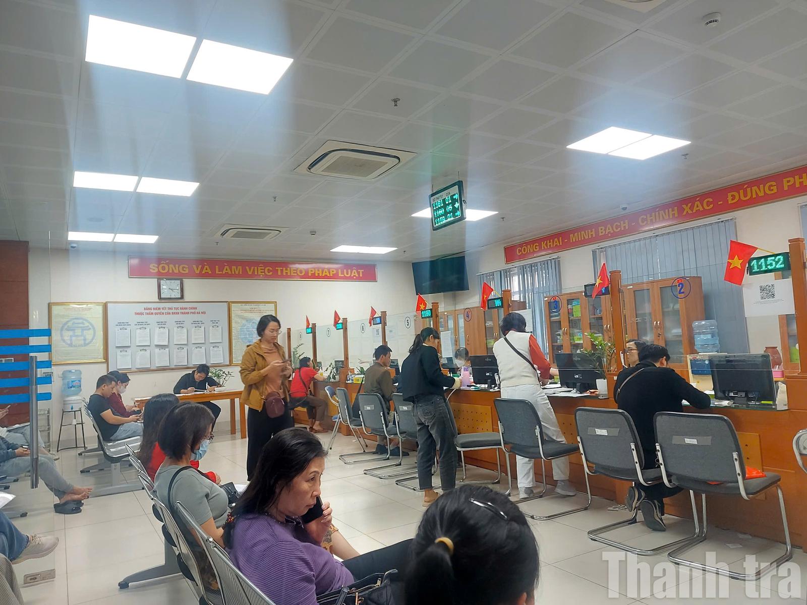 Công dân đến làm thủ tục tại Bảo hiểm xã hội Hà Nội. Ảnh: Thiên Bình