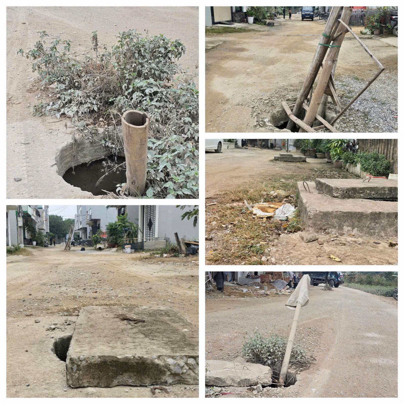 Theo quan sát của phóng viên Báo Thanh tra tại hiện trường, cả một tuyến đường chính của khu tái định cư có hàng loạt hố ga đều không có nắp đậy. Để tránh các vụ tai nạn đáng tiếc xảy ra, người dân đã dùng luồng cắm xuống hố ga để nhắc nhở người đi đường. Nhiều vụ ô tô qua đây, do tài xế không quan sát đã giật mình mất lái đâm vào lề đường, gây hư hại xe, nhiều lái xe còn bị thương oan ức.