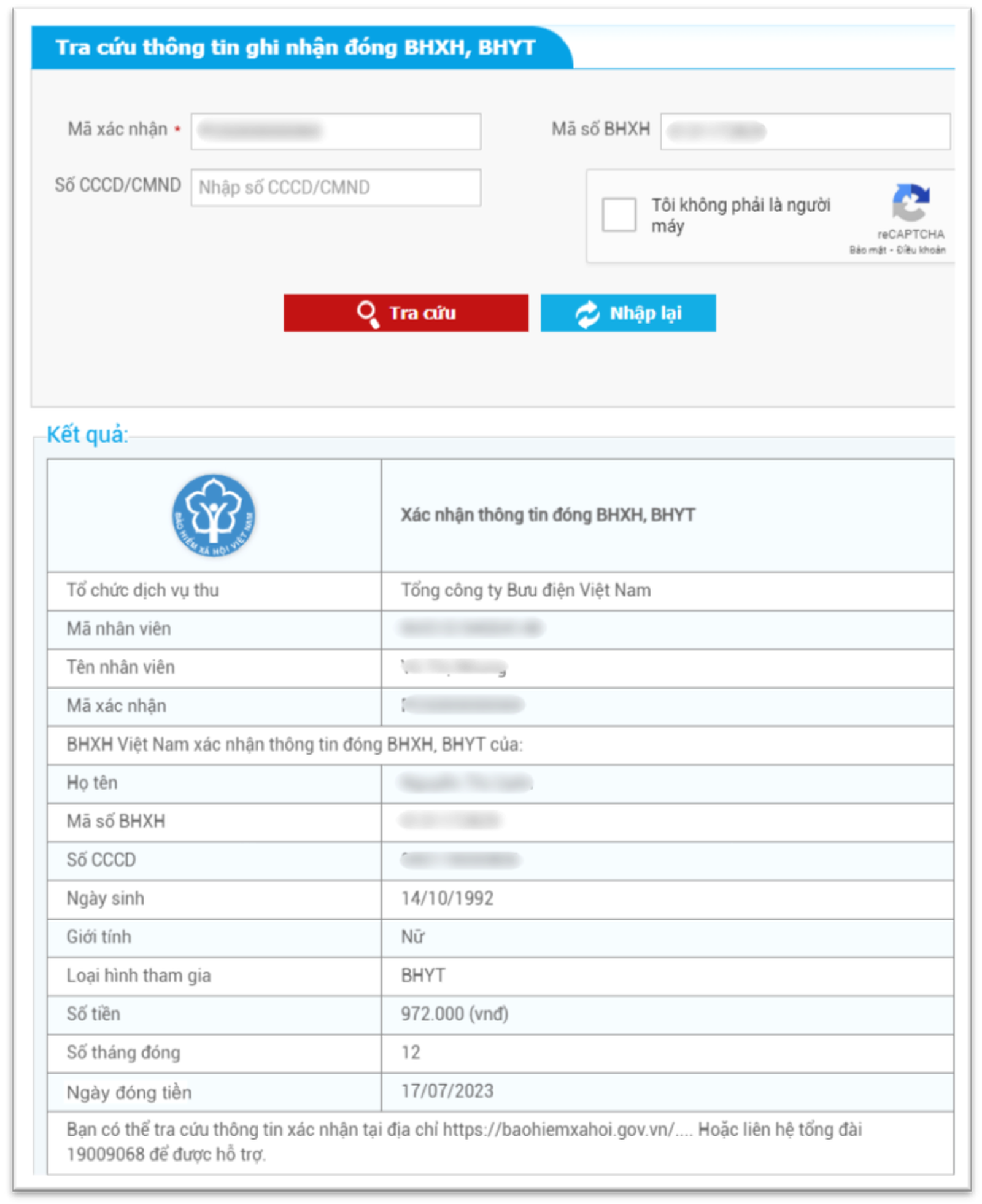 Bước 5: BHXHVN cung cấp thông tin cho người tham gia theo Mã xác nhận và Mã số BHXH/Số CCCD.