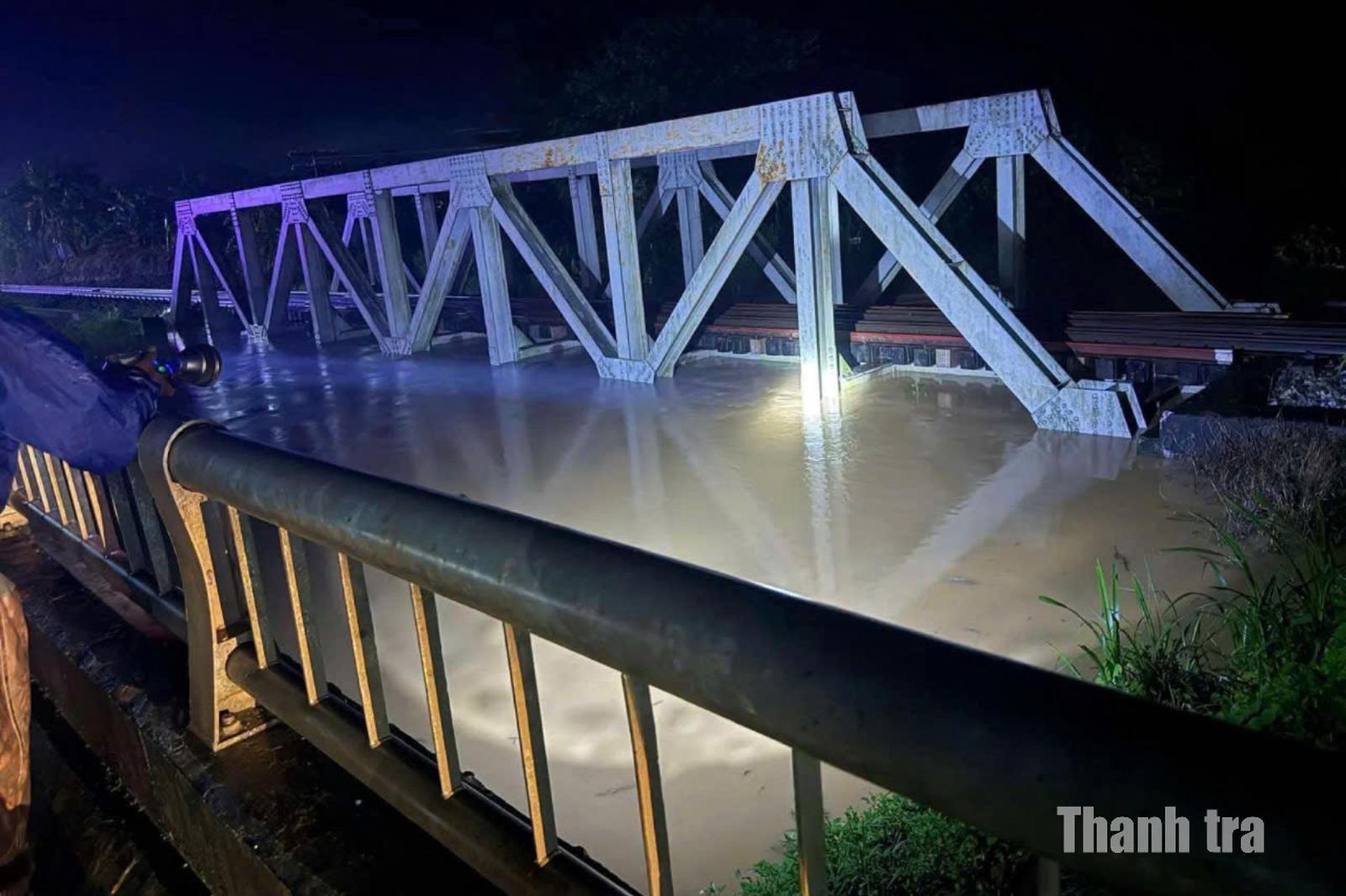 Nước tràn qua Cầu sắt Nga Quán. Ảnh: Bùi Bình