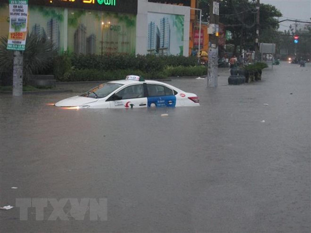 Nhiều tuyến đường ngập sâu hơn 50cm, phương tiện ngập trong nước. (Nguồn: TTXVN)