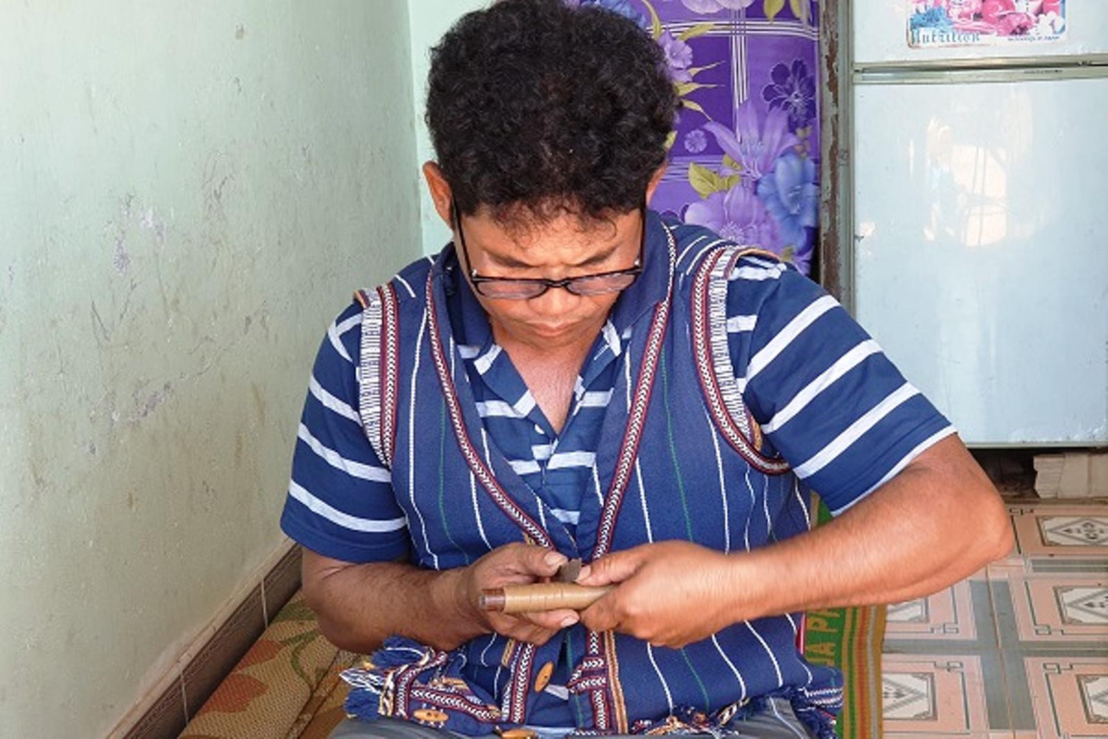 Đến thăm gia đình nghệ nhân Ya Tuất khi anh đang cặm cụi sửa lại chiếc máy công nông đã cũ kĩ của gia đình mình để để phục vụ cho việc đồng áng.