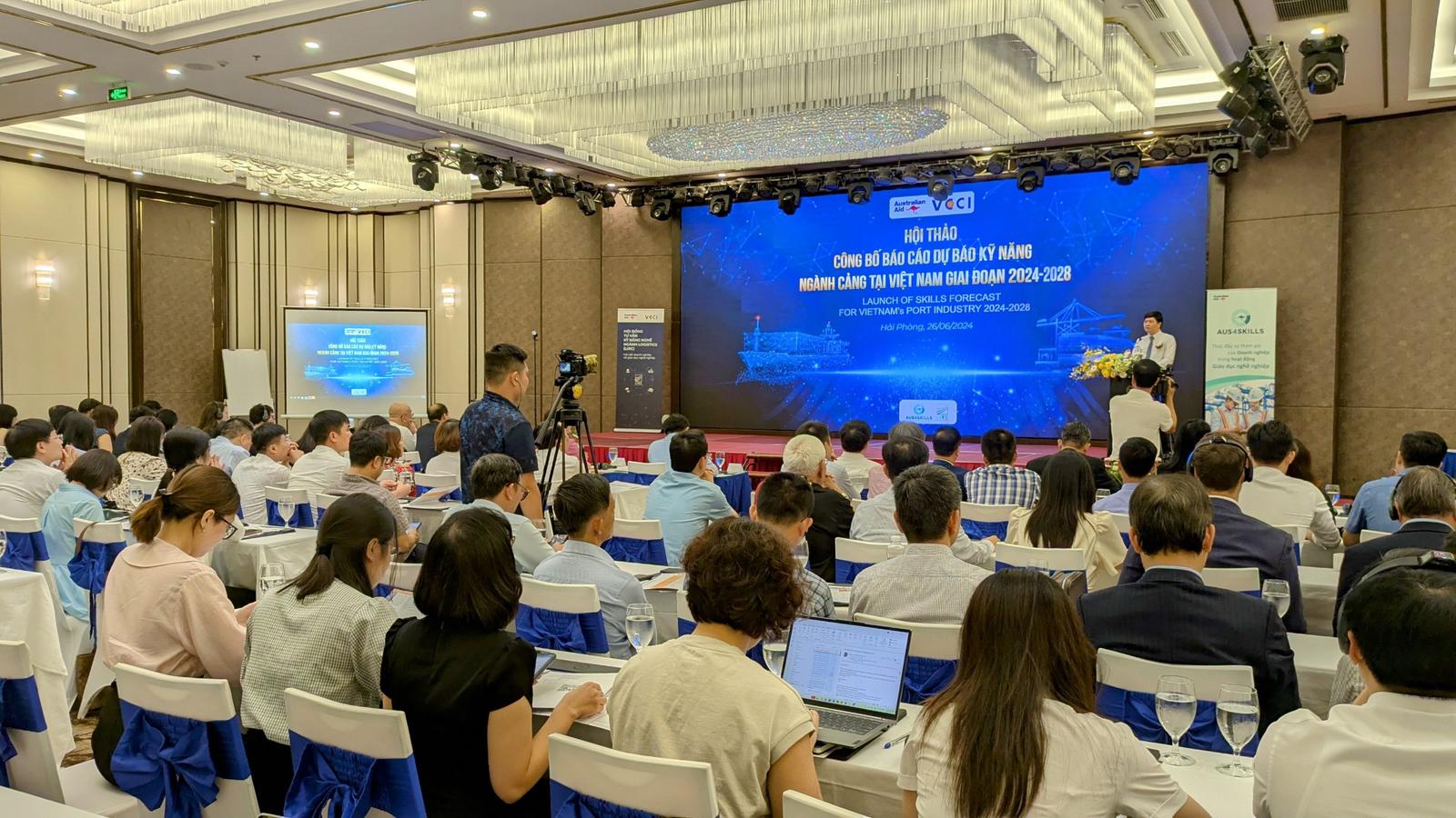 (Thanh tra) - Ngày 26/6, Phó Chủ tịch UBND thành phố Hoàng Minh Cường dự Hội thảo “Công bố Báo cáo Dự báo kỹ năng ngành Cảng tại Việt Nam, giai đoạn 2024 - 2028” do Liên đoàn Thương mại và Công nghiệp Việt Nam (VCCI) phối hợp Cơ quan Phát triển Quốc tế Úc tổ chức tại Hải Phòng.