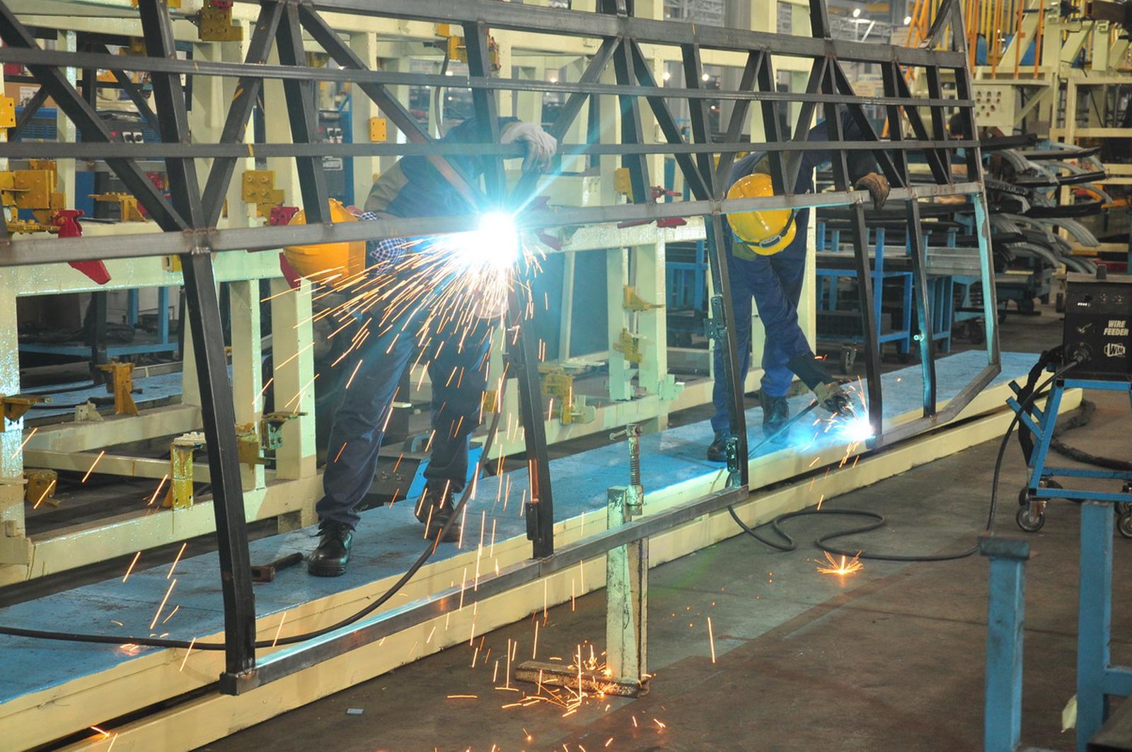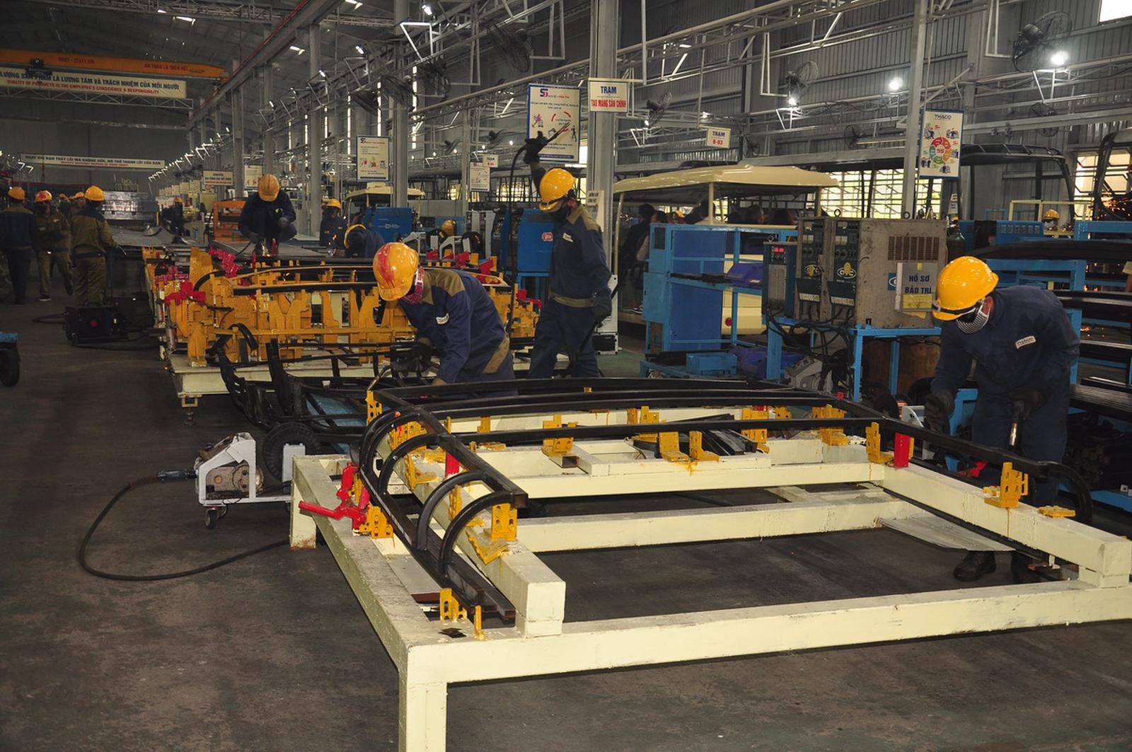 Phân xưởng của Nhà máy sản xuất xe Bus nhanh chóng hoạt động trở lại. Ảnh: NP