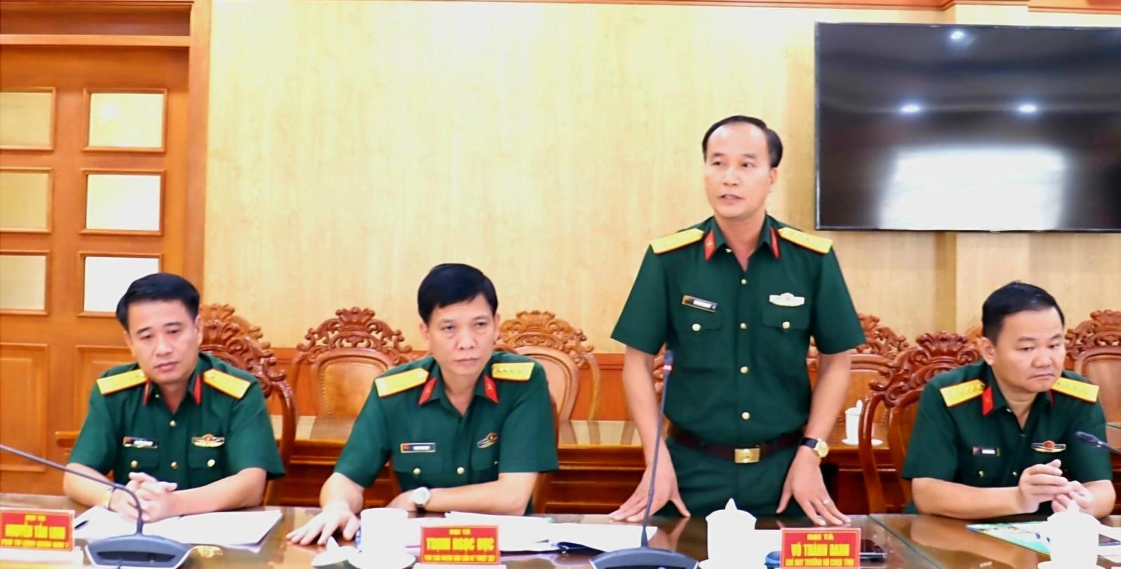 Đại tá Võ Thành Danh, Chỉ huy trưởng Bộ CHQS tỉnh Đồng Nai tại báo cáo nội dung với Đoàn công tác. Ảnh CTT