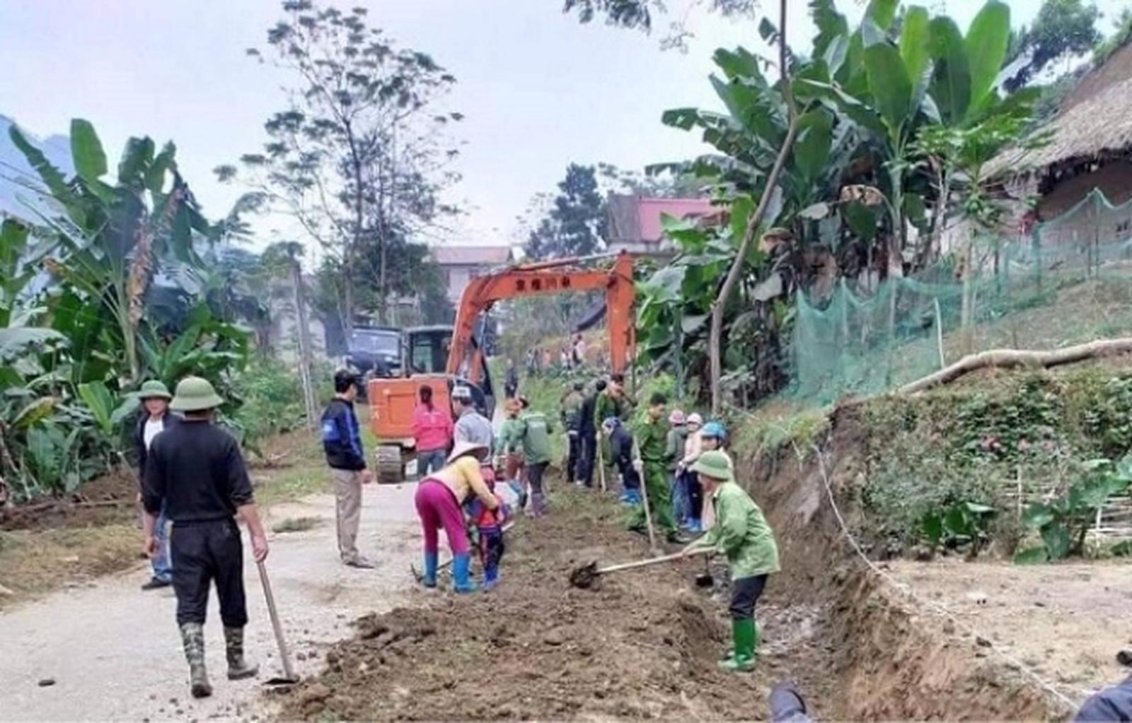 Nhân dân thôn Năn Kè, xã Phan Thanh, huyện Lục Yên tích cực hiến đất và tham gia làm đường giao thông nông thôn. Ảnh: Bùi Bình