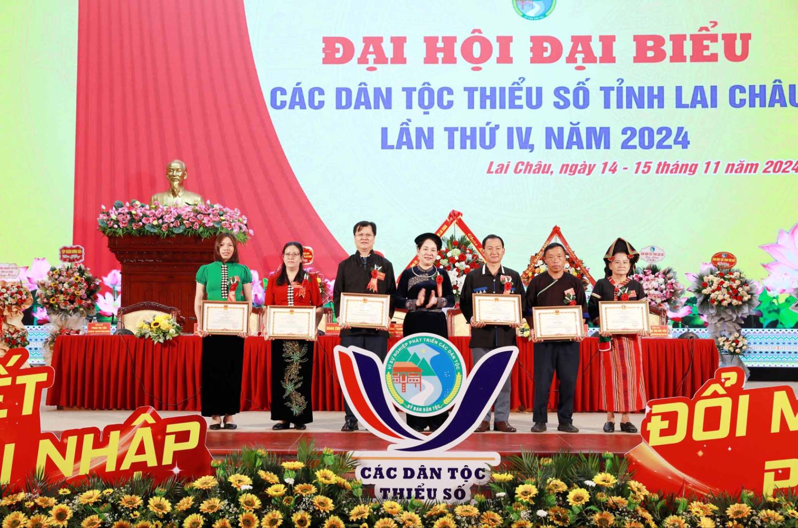 Nhân dịp này, Bộ trưởng, Chủ nhiệm Ủy ban Dân tộc tặng Bằng khen cho 1 tập thể, 5 cá nhân có thành tích xuất sắc trong thực hiện công tác dân tộc và chính sách dân tộc của Đảng, Nhà nước; tặng Kỷ niệm chương “Vì sự nghiệp phát triển các dân tộc” cho 5 cá nhân có thành tích xuất sắc đóng góp cho sự nghiệp phát triển các dân tộc Việt Nam; UBND tỉnh Lai Châu tặng Bằng khen cho 19 tập thể, 50 cá nhân có thành tích xuất sắc, đóng góp trong phát triển kinh tế - xã hội, quốc phòng an ninh vùng đồng bào dân tộc thiểu số tỉnh Lai Châu giai đoạn 2019 - 2024.