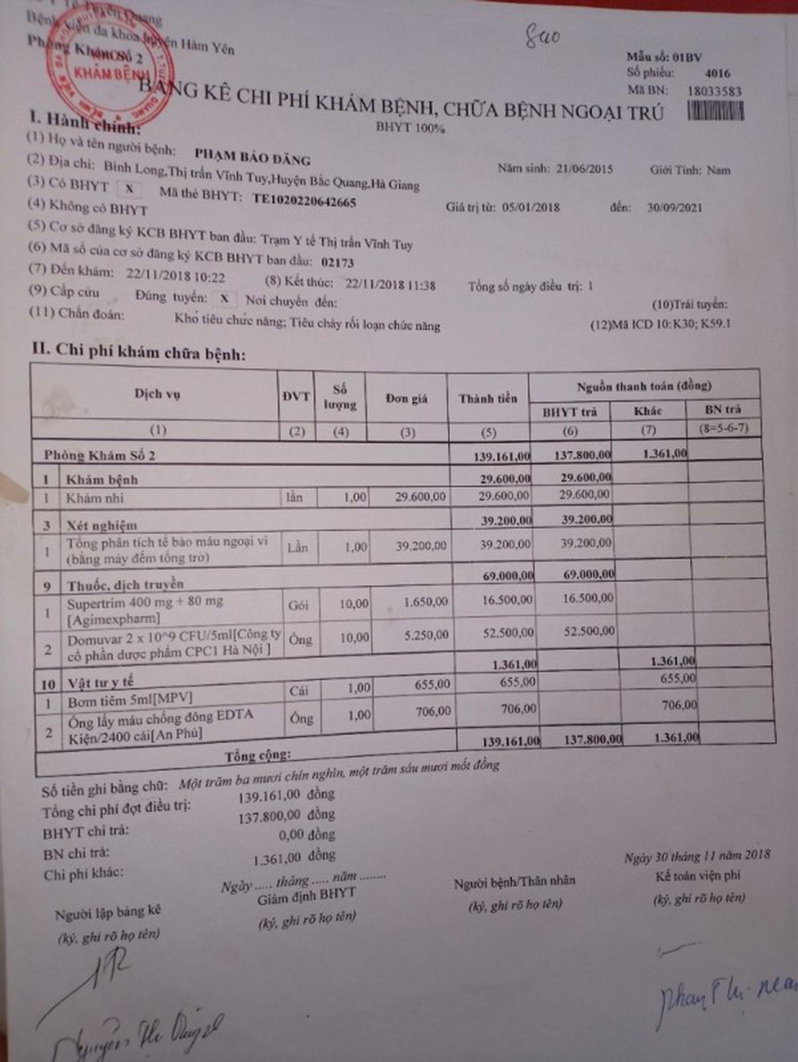 Cháu Phạm Bảo Đăng bị chuẩn đoán khó tiêu chức năng, tiêu chảy rối loạn chức năng