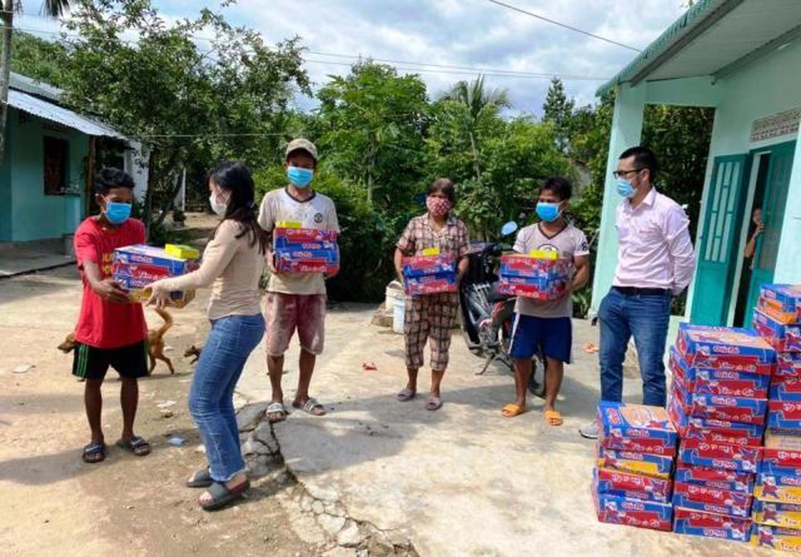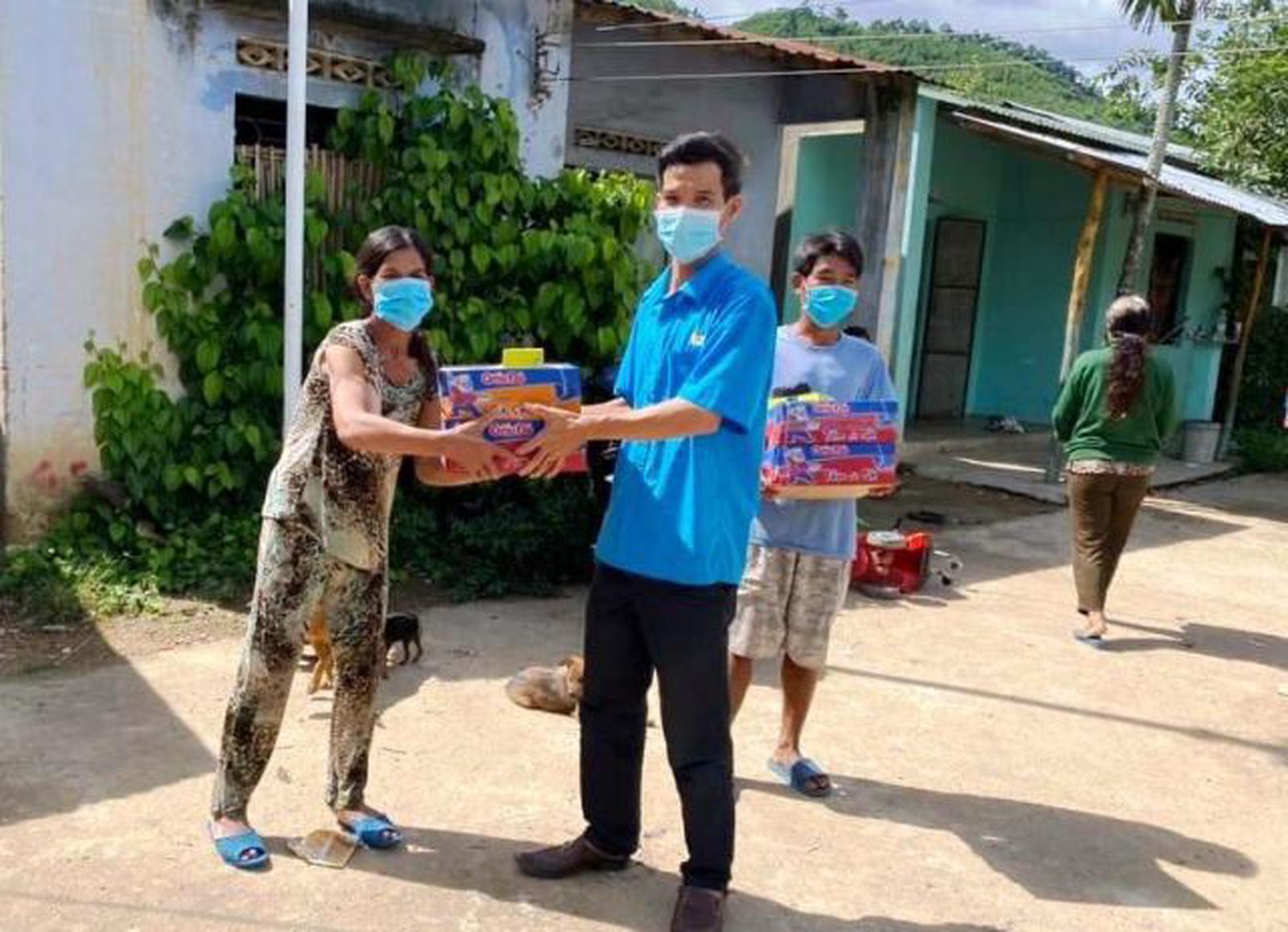 Hỗ trợ đồng bào DTTS gặp khó khăn vì dịch ở huyện miền núi Khánh Vĩnh. Ảnh: Thanh Hòa