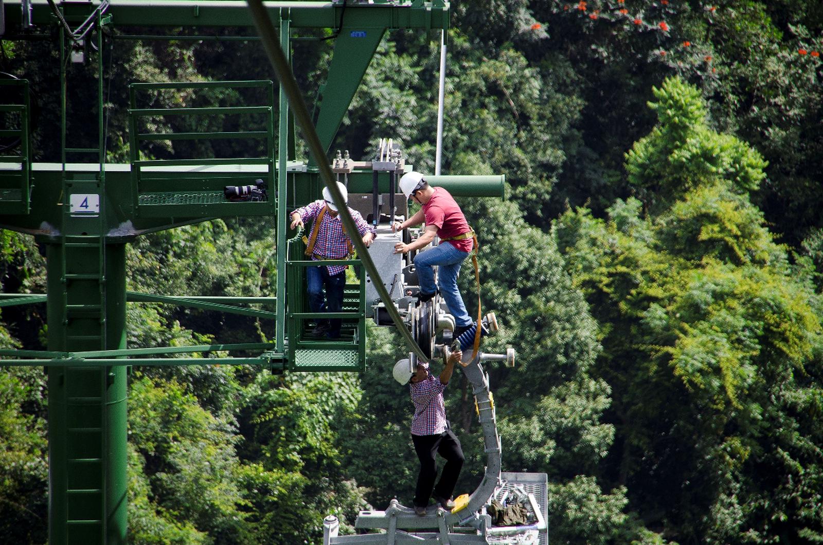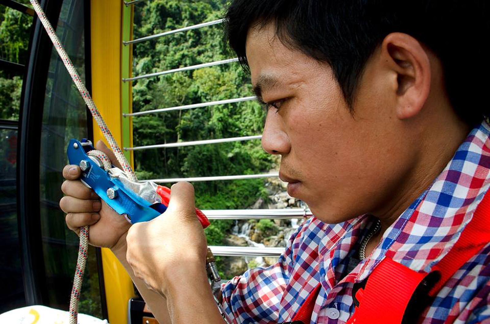 Sự phối hợp nhịp nhàng giữa kỹ thuật vận hành cáp treo và kỹ thuật viên điều khiển sợi cáp...