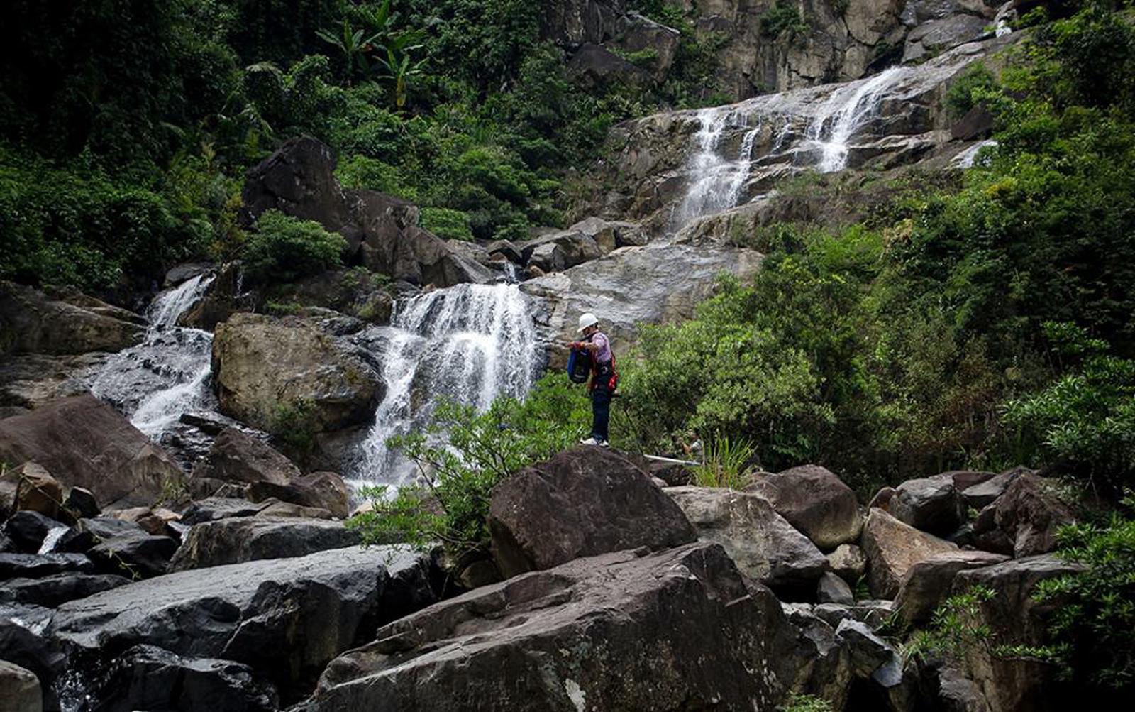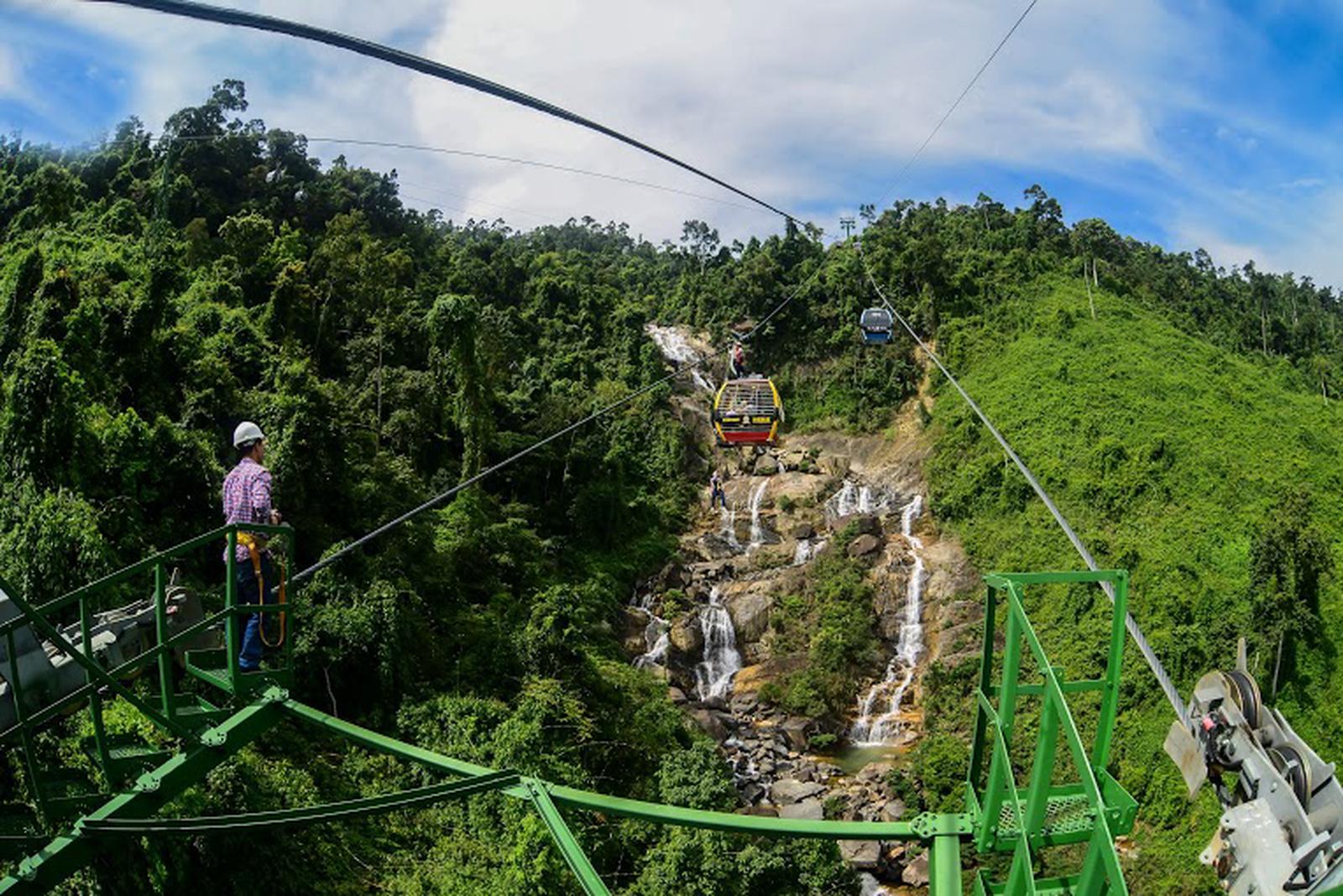 Địa hình núi rừng hiểm trở, suối sâu, thác dốc nên phương án nhặt rác có một không hai này được nhân viên kỹ thuật Bà Nà áp dụng. Một công việc đặc biệt được tiến hành bằng một phương thức cũng vô cùng đặc biệt