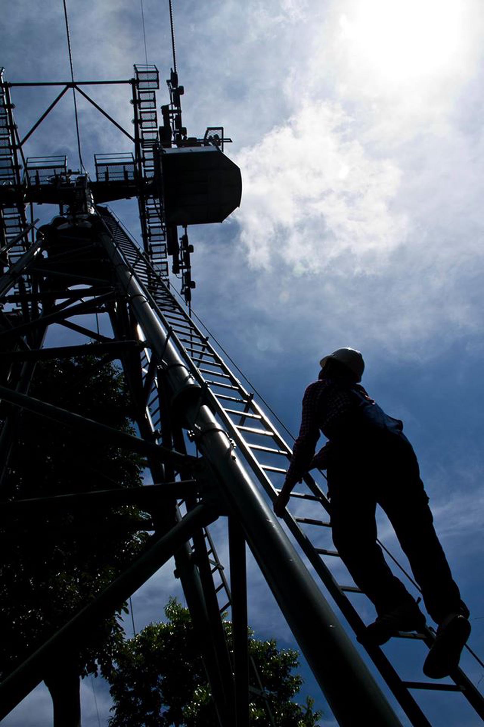 Treo mình giữa không trung. Điểm tựa duy nhất là sợi dây cáp mỏng manh