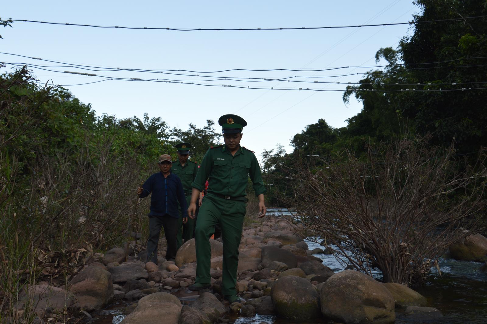 Già làng Lỳ Xuyến Phù tham gia tuần tra vùng biên, cột mốc cùng bộ đội biên phòng. Ảnh: H.A