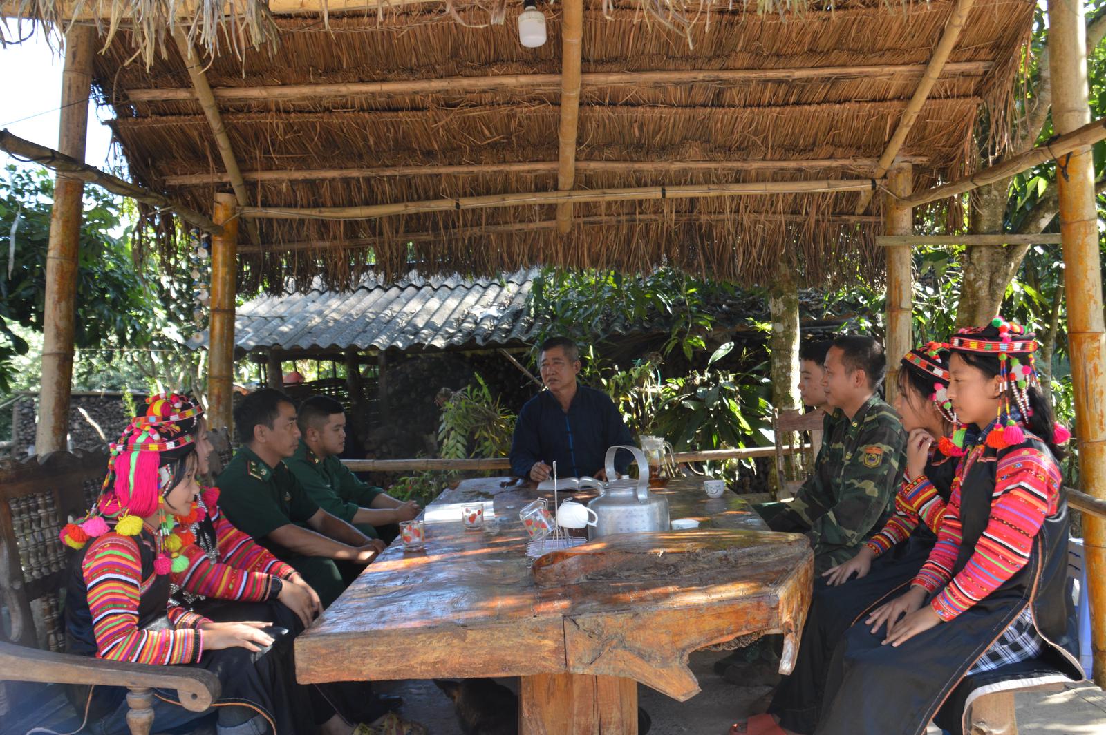 Ông Pờ Dần Sinh trao đổi với bộ đội biên phòng việc giữ gìn biên giới. Ảnh: H.A