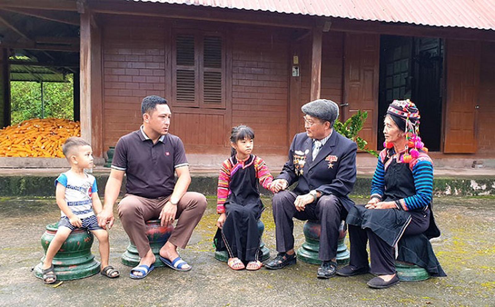 Ông Pờ Dần Sinh chỉ bảo con cháu giữ gìn văn hóa, phát triển kinh tế gia đình. Ảnh: H.A