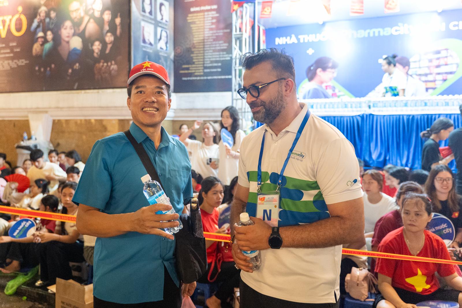 Người dân bất ngờ với khi nhận những chai nước từ vị CEO người nước ngoài của Pharmacity. Sự gần gũi đó khiến mọi khoảng cách được xóa nhòa.