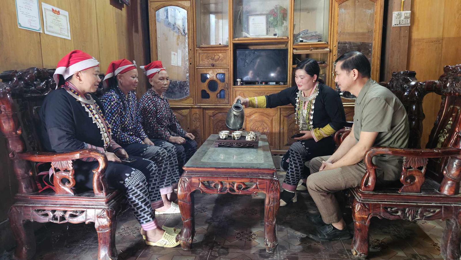 Lãnh đạo UBND xã Liên Minh trong buổi nói chuyện trao đổi với người dân về tác hại của tảo hôn và hôn nhân cận huyết thống. Ảnh: ND