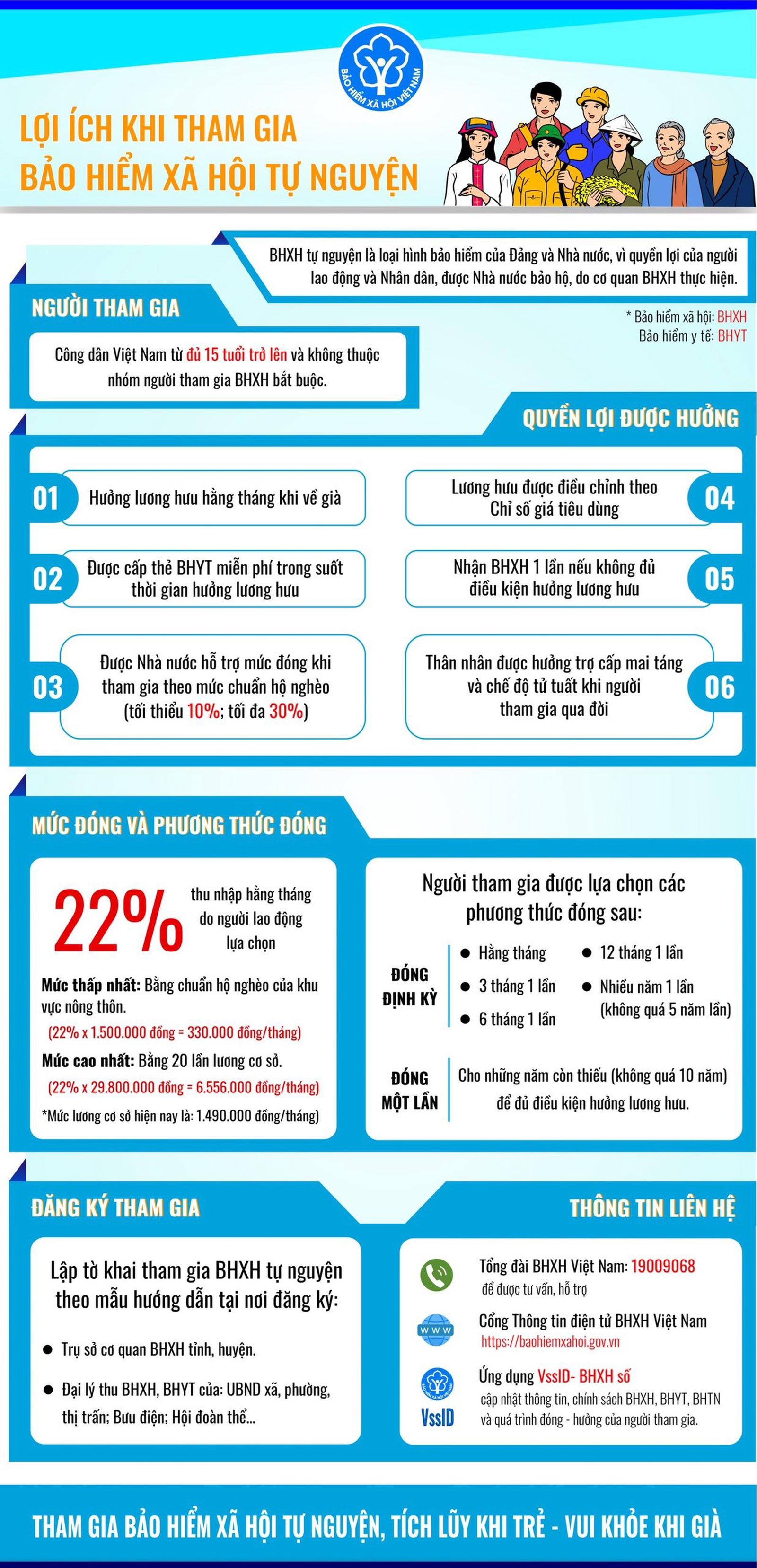Không chỉ thế, người tham gia BHXH tự nguyện còn được cấp thẻ bảo hiểm y tế (BHYT) miễn phí trong suốt thời gian nhận lương hưu để chăm sóc sức khỏe.