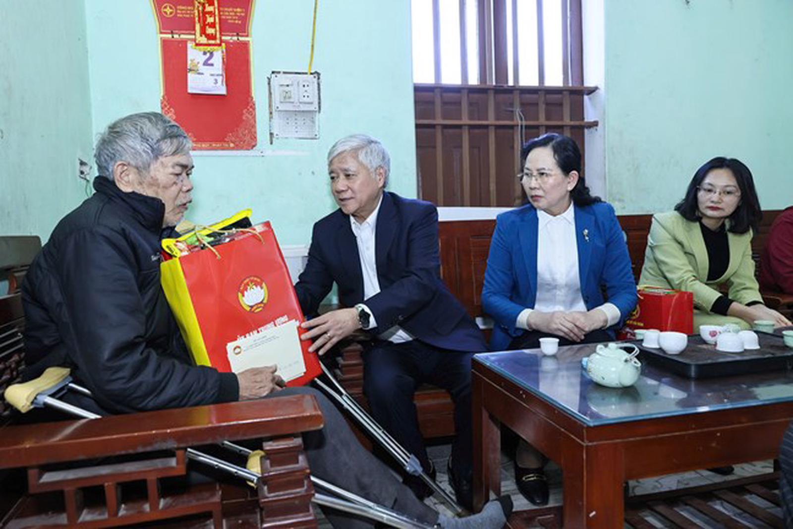 Chủ tịch UBTƯ MTTQ Việt Nam Đỗ Văn Chiến trao những phần quà ấm áp tới tận tay những người có hoàn cảnh khó khăn trên địa bàn tỉnh Hà Nam. Ảnh: Q.Vinh