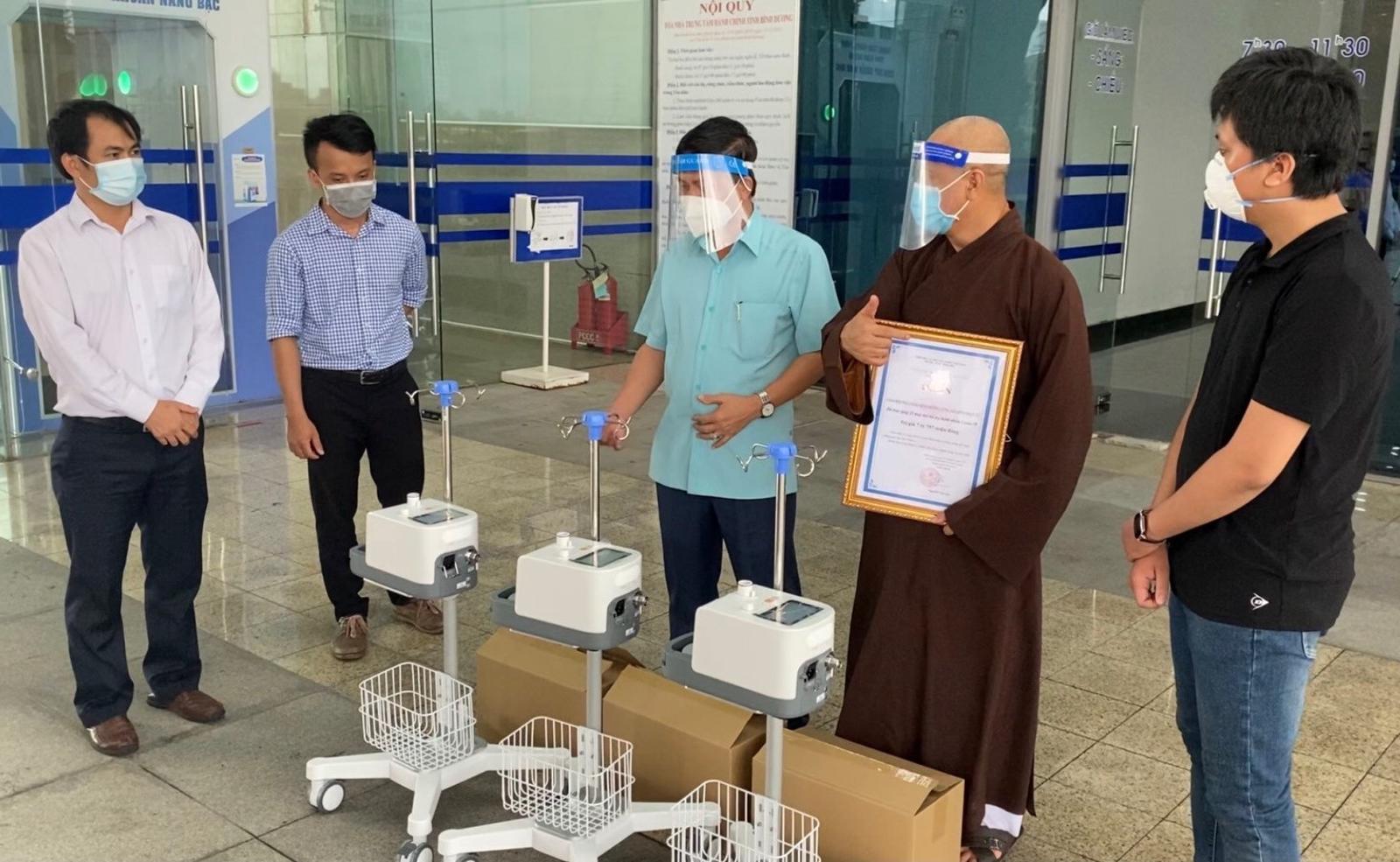 Hòa thượng Thích Huệ Thông, Phó Tổng Thư ký Hội đồng Trị sự, Trưởng ban Trị sự Giáo hội Phật giáo Việt Nam tỉnh Bình Dương cho biết, trong 25 máy thở, có 10 máy ô xy dòng cao có tích hợp máy đo nồng độ ô xy SpO2 và 15 máy thở chức năng cao, có công cụ thở ô xy dòng cao, trị giá hơn 7,7 tỷ đồng.