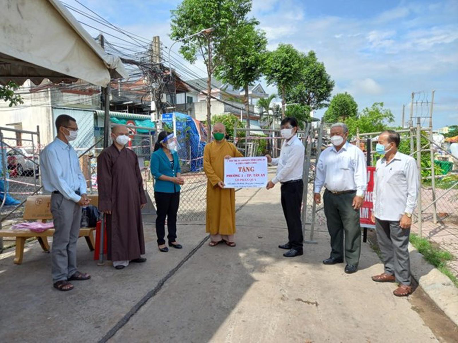 Hưởng ứng lời kêu gọi của các cấp, các ngành từ Trung ương đến địa phương chung tay phòng, chống dịch Covid-19, từ tháng 6 - 8/2021, Ban Trị sự Giáo hội Phật giáo Việt Nam tỉnh Long An vận động hơn 24,5 tỉ đồng hỗ trợ các hoạt động từ thiện ở địa phương. Số tiền trên được đóng góp từ các mạnh thường quân, tăng, ni, Phật tử trong và ngoài tỉnh dành cho các hoạt động như: Xây dựng 13 cây cầu giao thông nông thôn; hỗ trợ 13 máy thở đa năng dòng cao; 5 máy hút đàm; trên 315 tấn gạo; gần 700 tấn rau, củ, quả; gần 34.000 phần quà tặng các khu vực phong tỏa, khu cách ly, người nghèo; gần 670 triệu đồng tiền mặt ủng hộ Quỹ Vắc xin và tuyến đầu phòng chống dịch; hơn 3.000 bộ đồ phòng hộ cấp 3, 4; trên 23.500 suất cơm cho tuyến đầu chống dịch, các khu cách ly...
