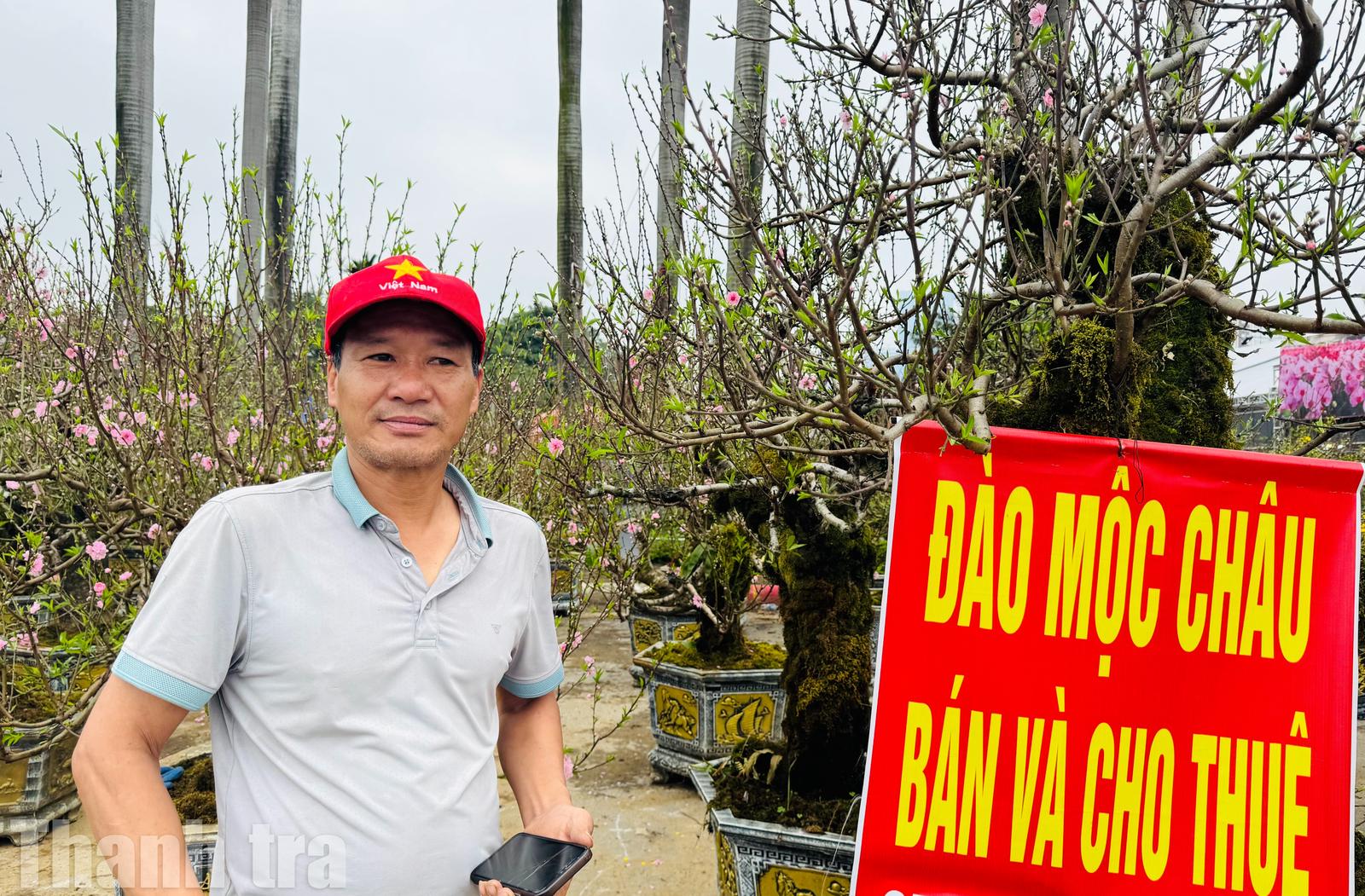 Gia đình anh Hoạch trồng hơn nghìn gốc đào trên đất Mộc Châu. Nhiều năm nay, cứ mỗi dịp tháng Chạp, anh lại rời nương vườn, đưa đào xuống Hà Nội bán ở khu vực Mỹ Đình và một số điểm khác trong thành phố.