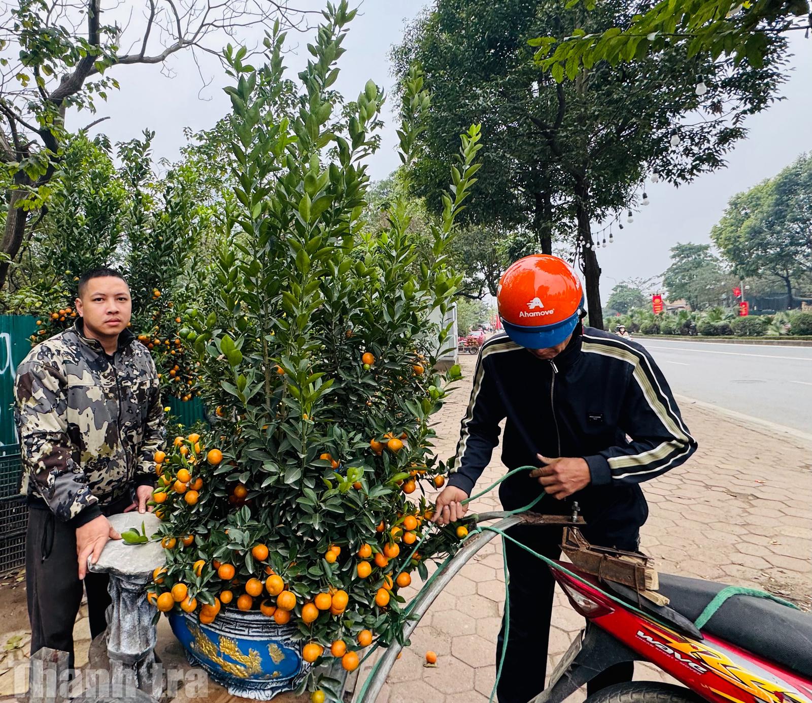Giữa dòng xe tấp nập, những chậu quất vàng rực vẫn lặng lẽ đứng đó, như đang chờ gia chủ đến đón về để kịp góp chút sắc Xuân trong những ngày Tết đang đến rất gần.