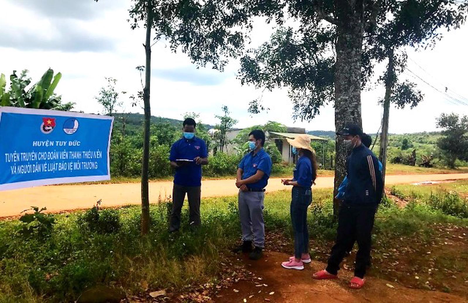 Nhiều thanh niên DTTS huyện Tuy Đức đang được tuyên truyền về bảo vệ môi trường và sản xuất. Ảnh: Thanh Chương