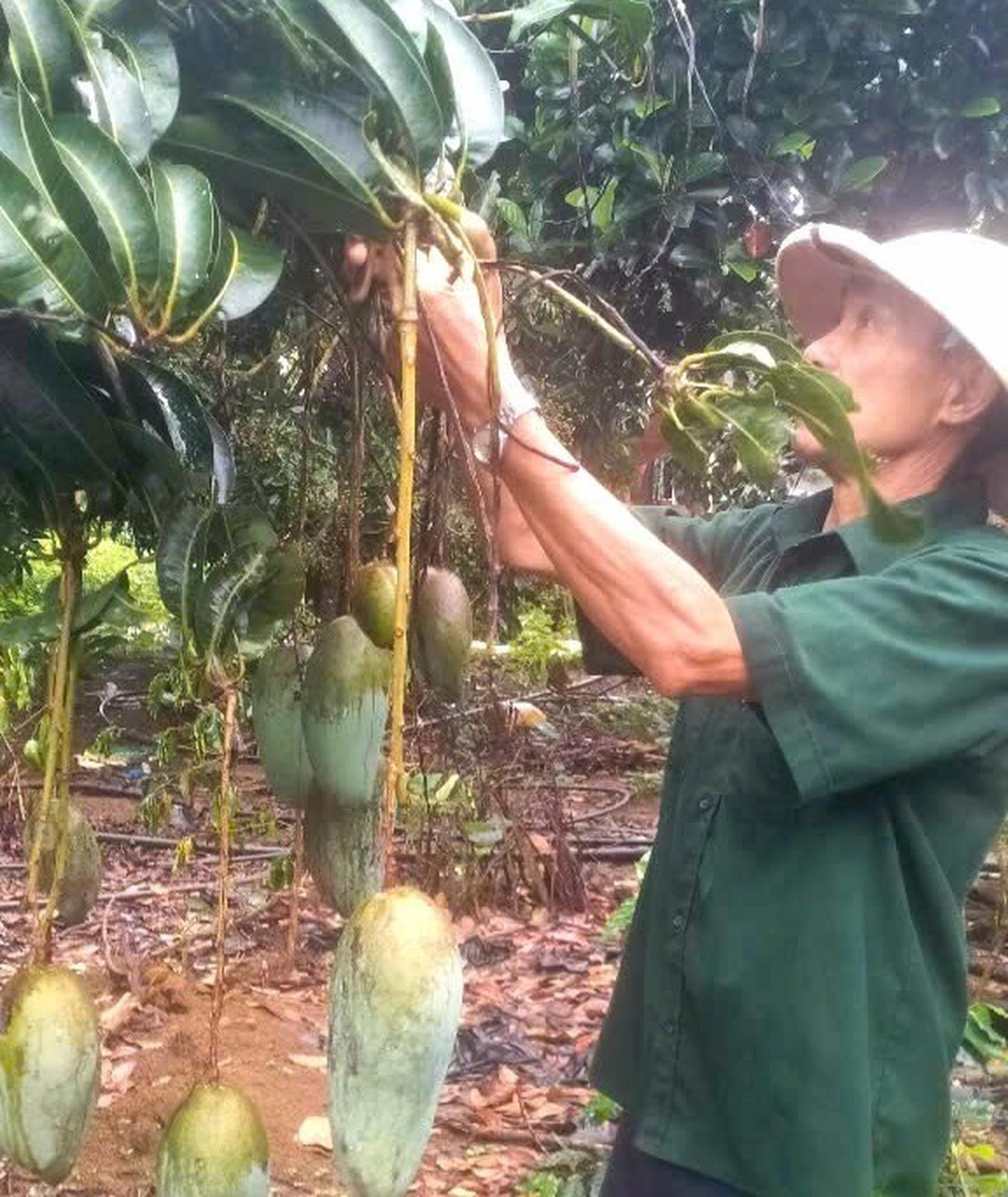 Ông Nguyễn Văn Ban, bản Tọ, xã Búng Lao, tỉnh Điện Biên chăm sóc vườn cây ăn trái của gia đình.