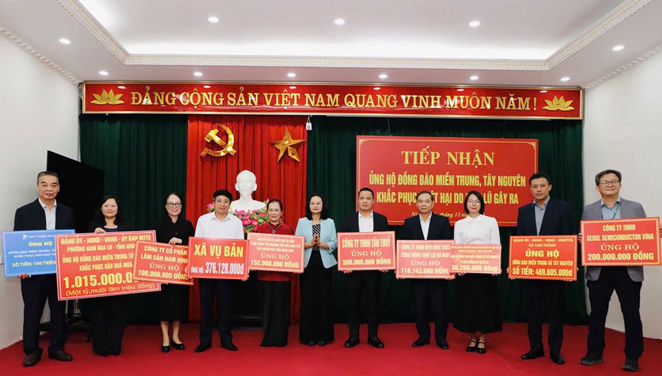Ngay trong buổi sáng, Uỷ ban MTTQ Việt Nam tỉnh Ninh Bình đã tiếp nhận ủng hộ từ 10 cơ quan, đơn vị, doanh nghiệp trên địa bàn tỉnh với tổng số tiền hơn 3 tỷ đồng. Những đóng góp của các cơ quan, đơn vị, doanh nghiệp là nguồn hỗ trợ thiết thực, góp phần động viên đồng bào các tỉnh miền Trung khắc phục hậu quả thiên tai, vượt qua khó khăn, sớm ổn định cuộc sống.