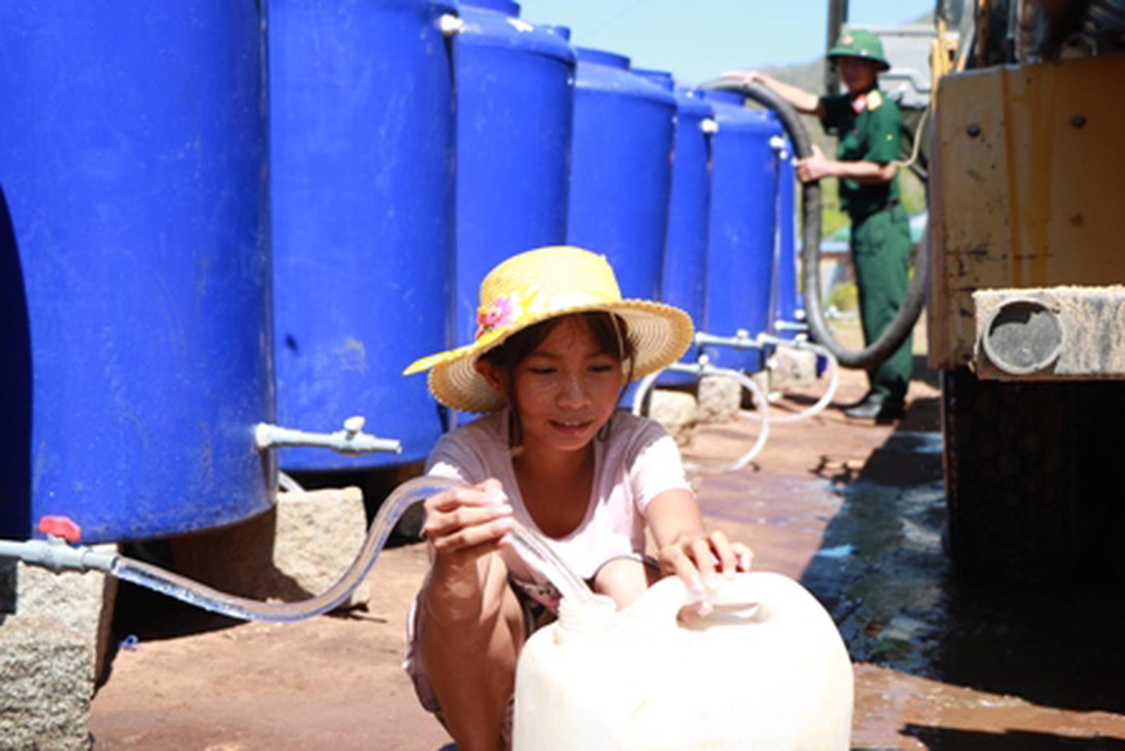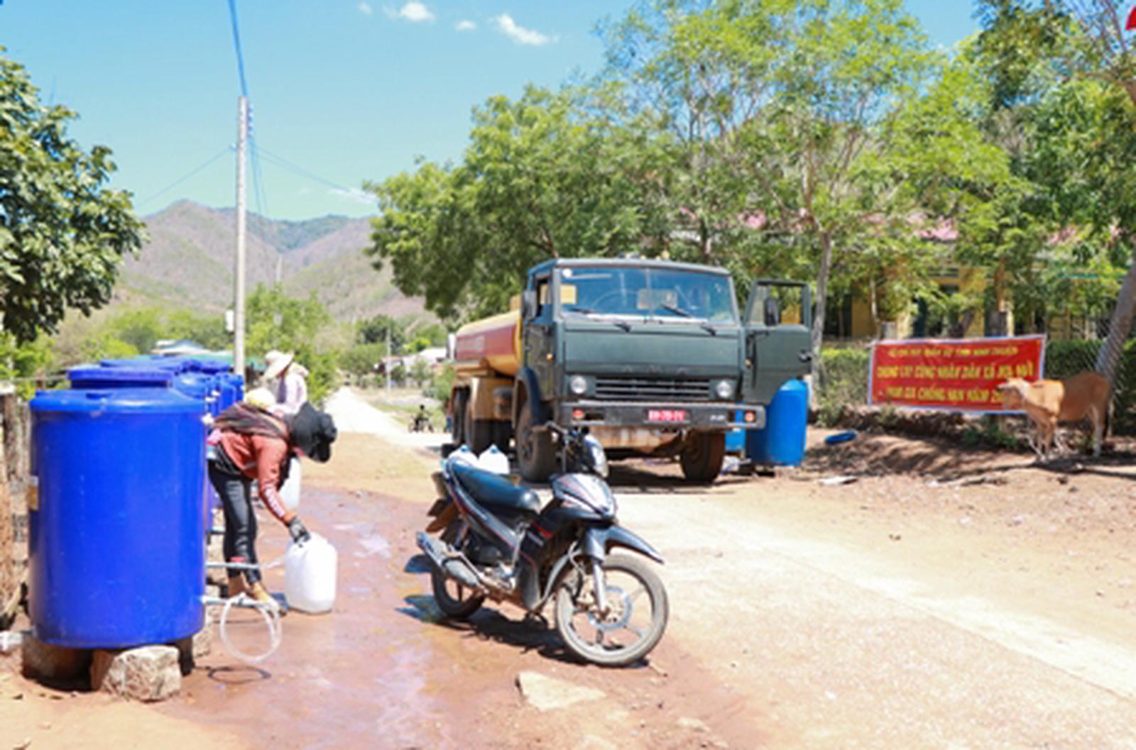Trước tình hình đó, Bộ Chỉ huy Quân sự tỉnh Ninh Thuận đã tổ chức cấp nước ngọt miễn phí tặng bà con những vùng hạn hán để ổn định cuộc sống.