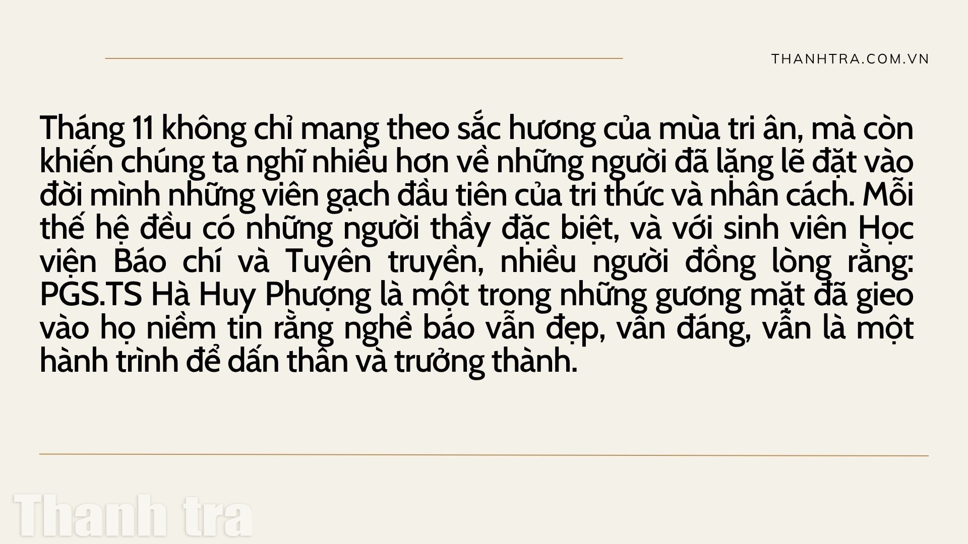 Tháng 11 là dịp để nhớ, để tri ân, để gọi tên những người đã đi cùng mình qua những mùa trưởng thành. Và PGS.TS Hà Huy Phượng là một trong những cái tên khiến người ta nhớ bằng sự biết ơn nhiều hơn là sự tôn vinh.