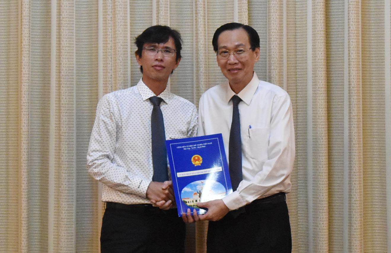 Phó Chủ tịch Thường trực UBND TP Lê Thanh Liêm trao quyết định cho ông Nguyễn Anh Thi. (Ảnh: TM)