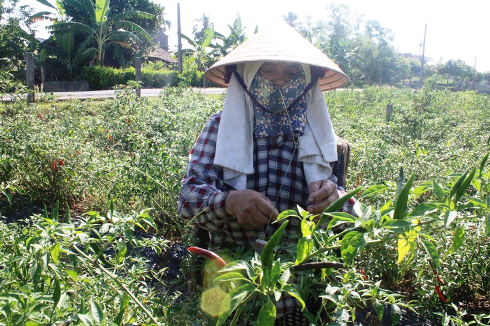 Bà Phạm Thị Tuyết ,thôn Thượng Phú buồn vì ớt được mùa nhưng rớt giá. Ảnh: Hải Yến