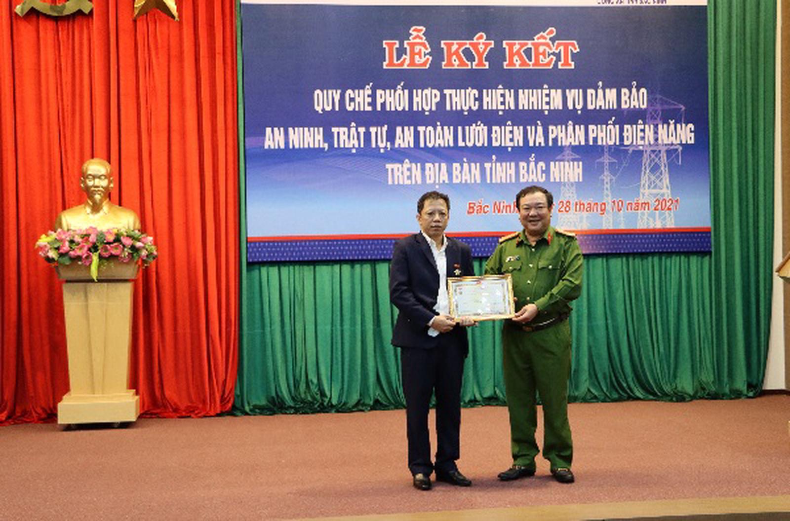 Công an tỉnh trao kỷ niệm chương của Bộ Công an cho Giám đốc Công ty Điện lực Bắc Ninh
