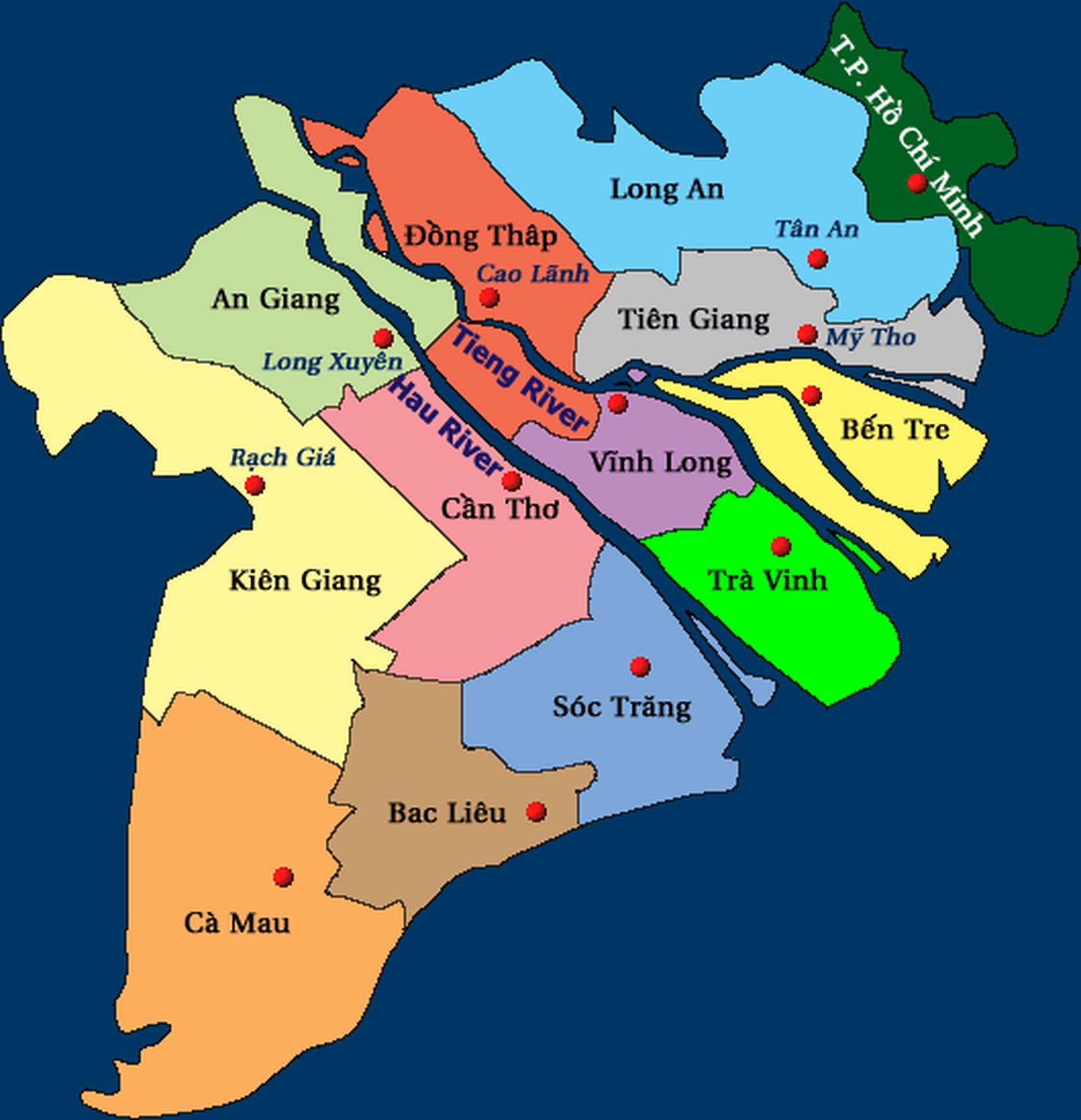 Bản đồ các tỉnh thuộc vùng Tây Nam Bộ
