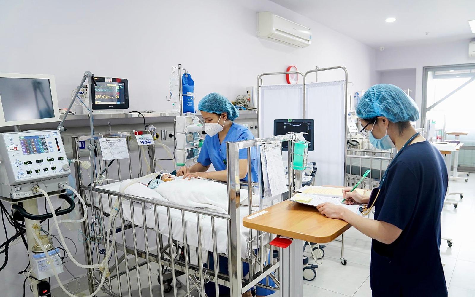 Ngày 8/12, chỉ số rối loạn đông máu đảm bảo hơn trẻ được tiến hành phẫu thuật tạm thời sửa quai và eo động mạch chủ và xiết nhỏ động mạch phổi lại. Hiện trẻ đang được chăm sóc tích cực, thở máy, duy trì thuốc hỗ trợ để đảm bảo tình trạng tuần hoàn và hô hấp cho trẻ.