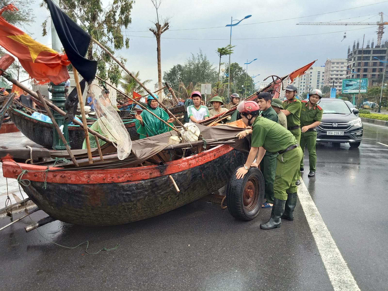 Trước cơn bão số 3, người dân Thanh Hóa tranh thủ đưa tàu thuyền vào bờ. Ảnh: VT