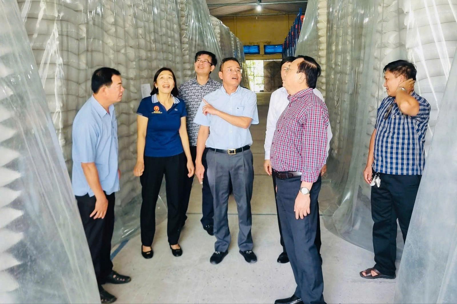 Thứ trưởng Bộ Tài chính Lê Tấn Cận (thứ 2 bìa phải) và Cục trưởng Cục Dự trữ Nhà nước Bùi Tuấn Minh kiểm tra, khảo sát tại kho dự trữ tỉnh Đồng Tháp. Ảnh: TQ